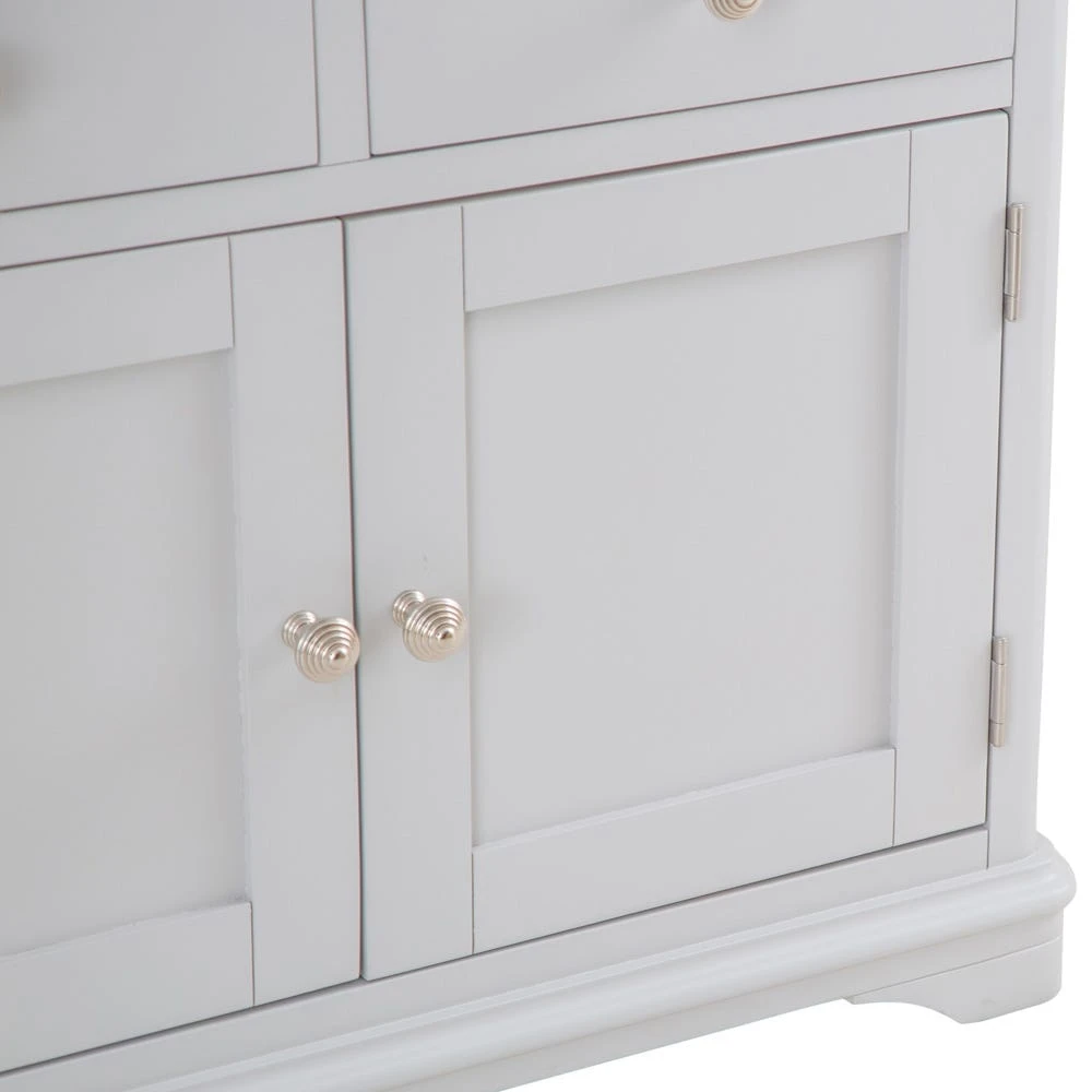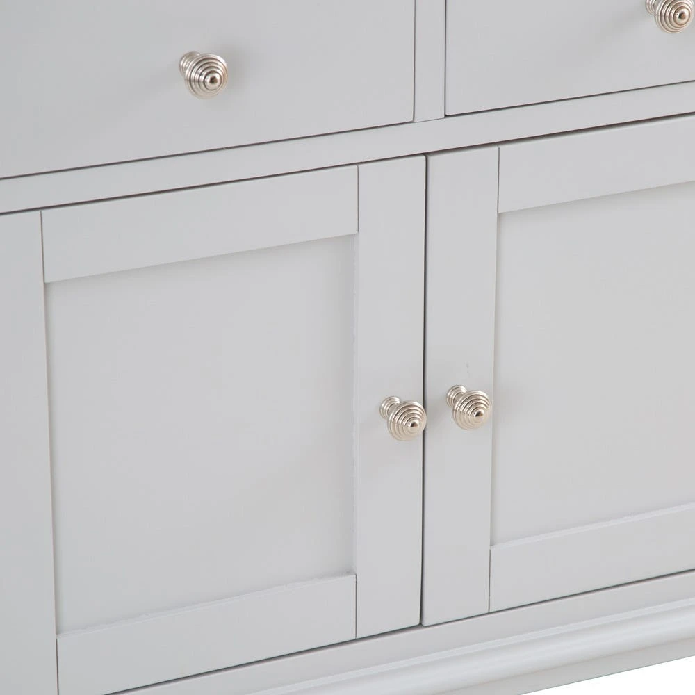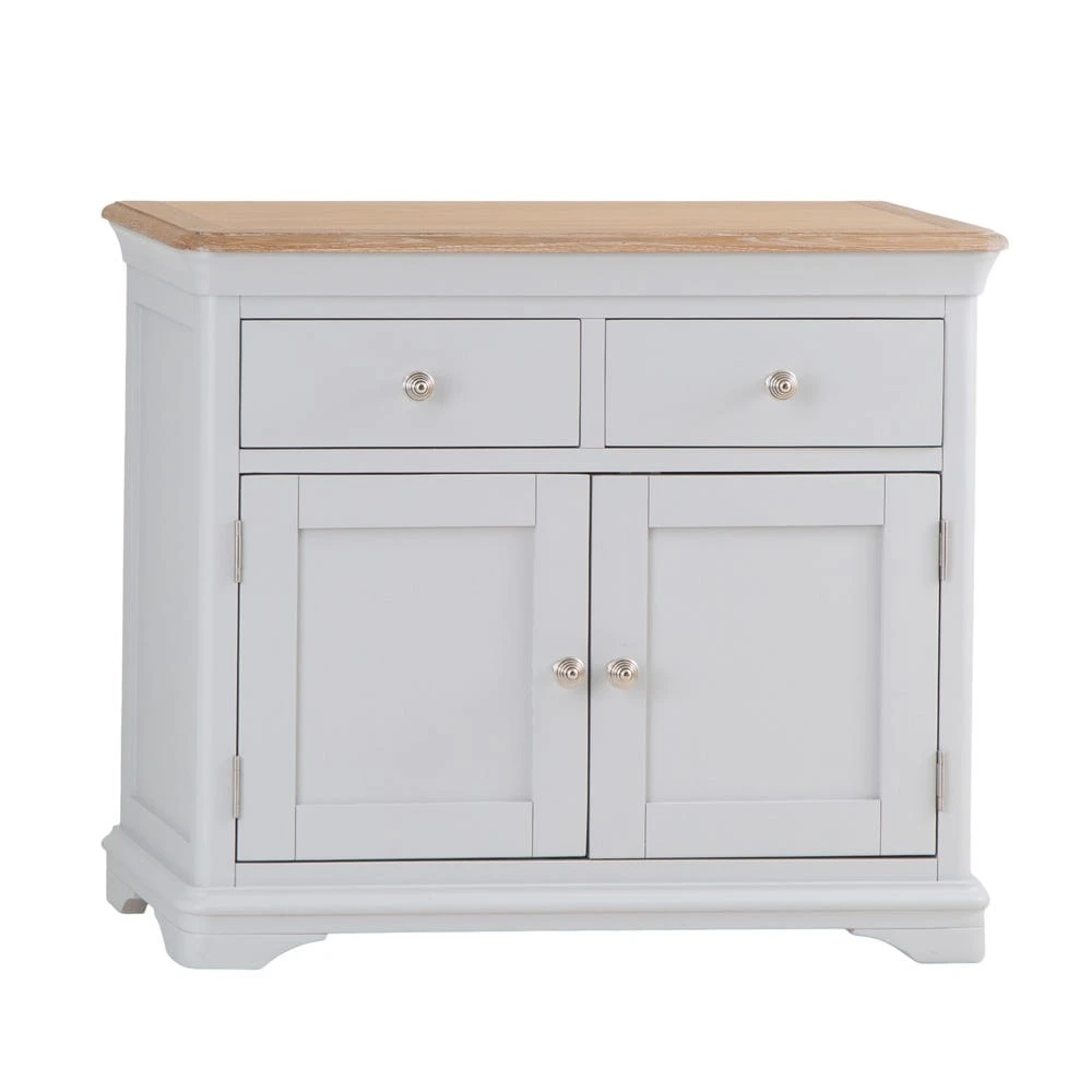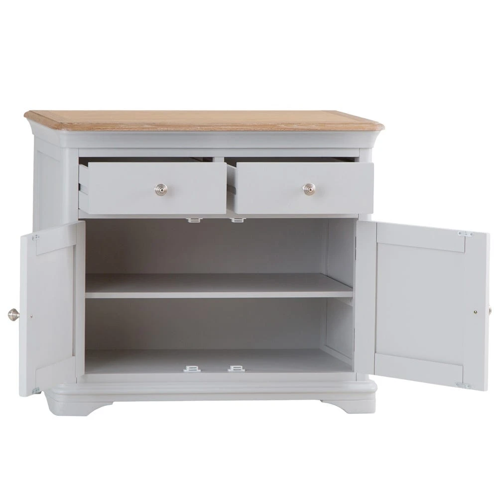 A practical storage unit and a super-handy sideboard all rolled into one, the Ashbourne grey painted 2 door small sideboard makes a welcome addition to your home furnishings.