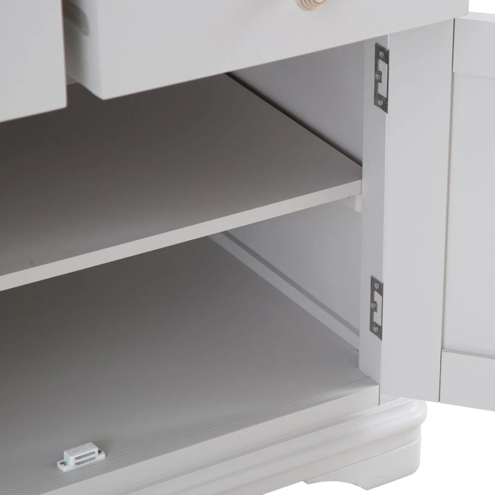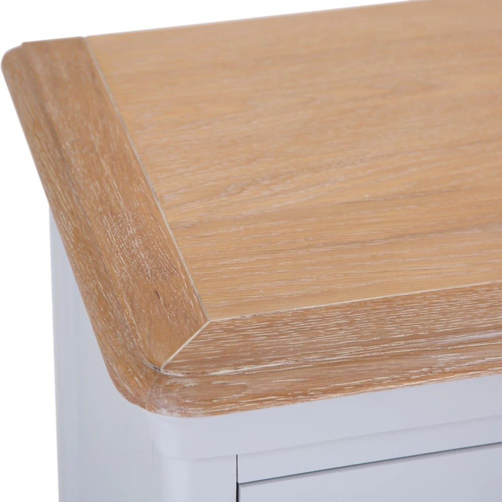 Finished in soft grey paint, this small sideboard sits quietly at the side of the room (the clue is in the name), blending effortlessly into many interior design styles. Its elegant oak top surface and sleek French-inspired bracket feet whisper of a quiet sophistication.