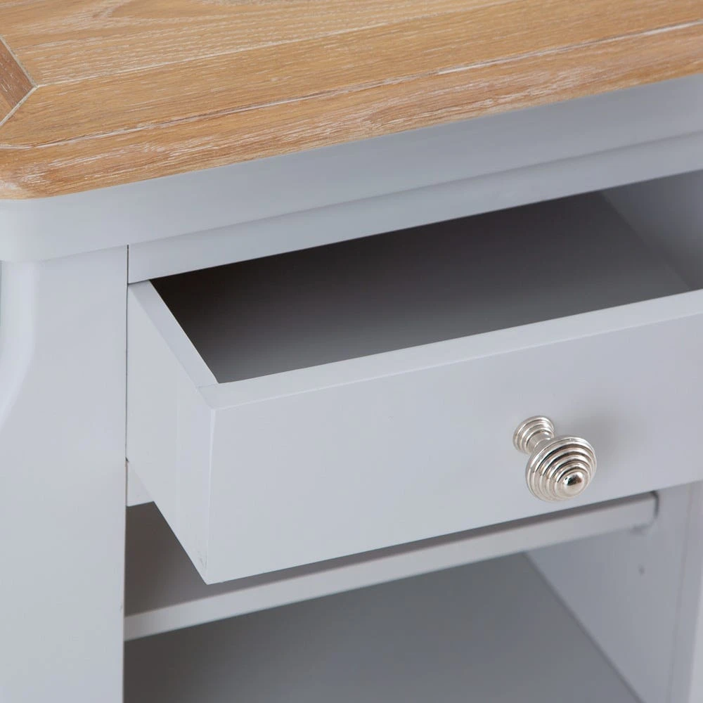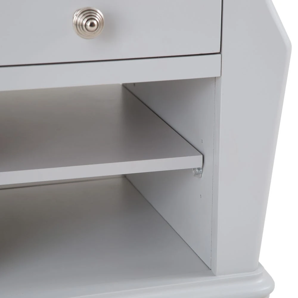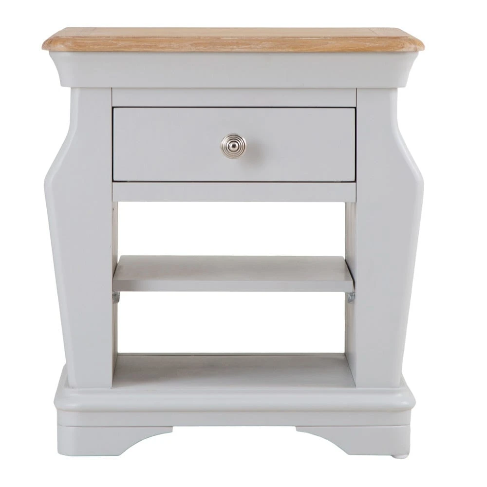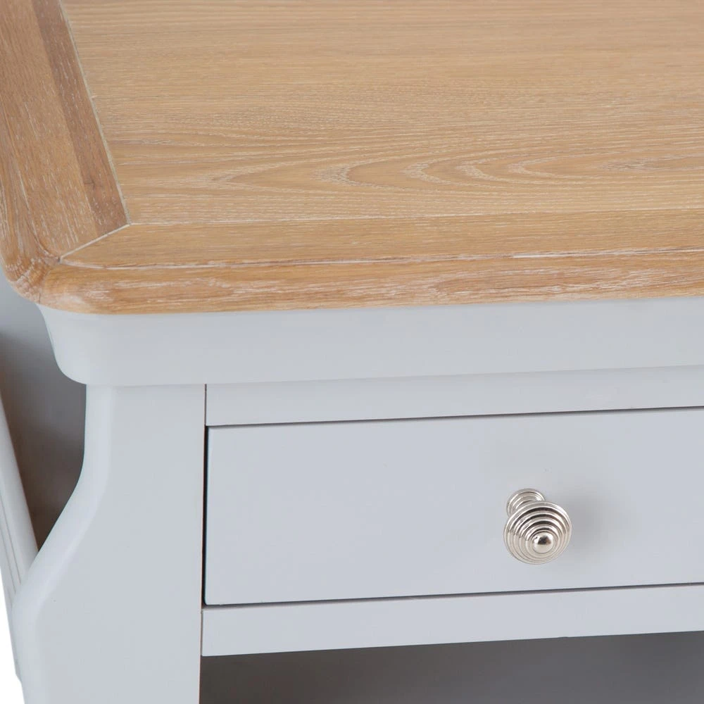 The trendy Ashbourne grey painted lamp table with magazine holder lights up just about any room – it’s neat and compact, and bookended by two sublimely practical magazine holders.