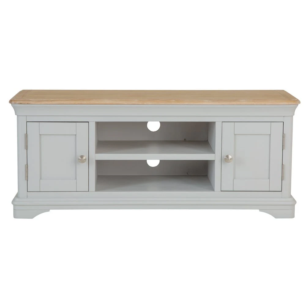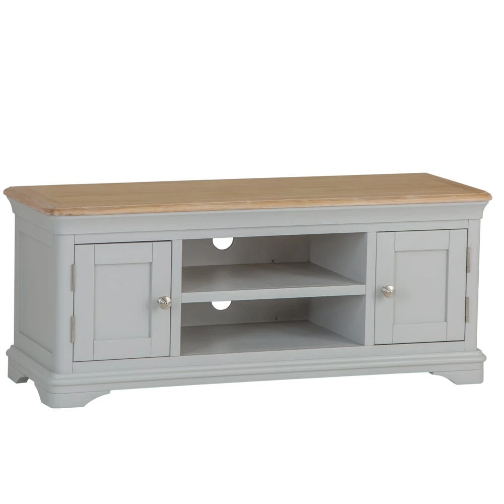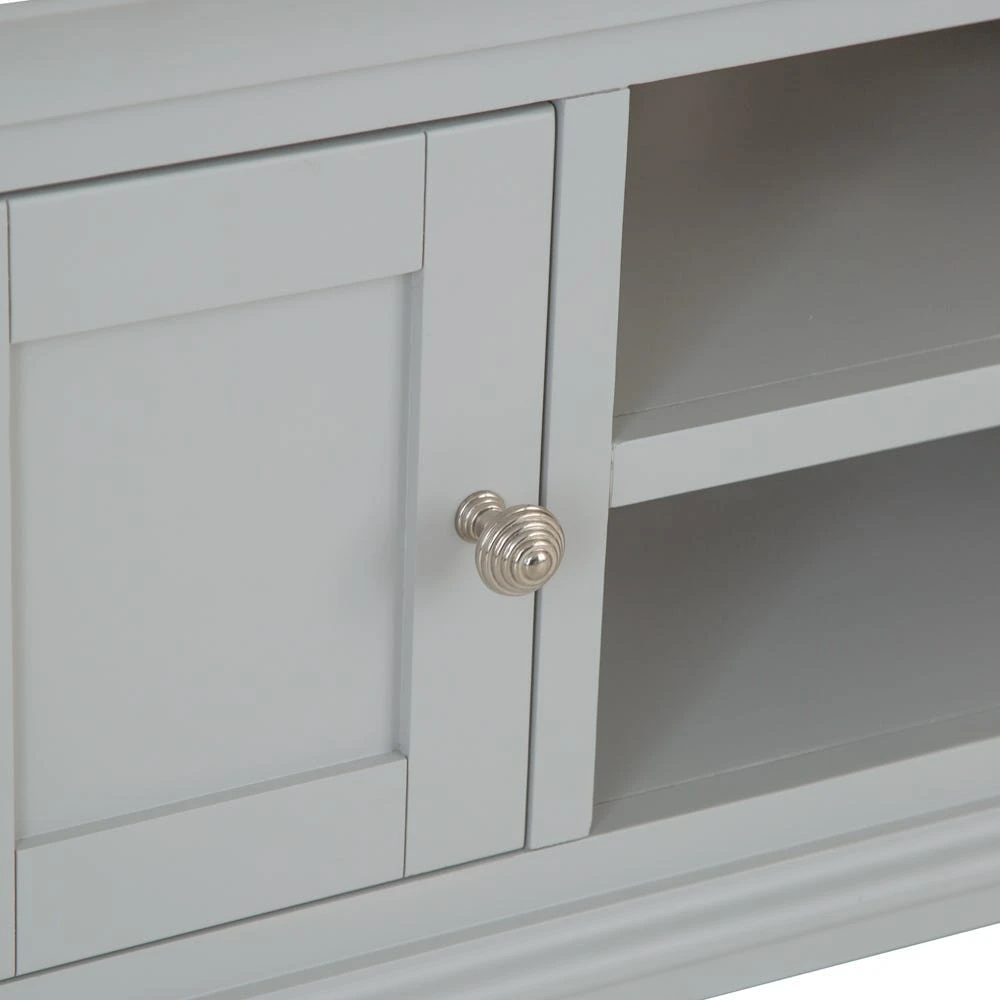 For a stylish TV table that makes a statement, look no further than the Ashbourne grey painted large TV unit.