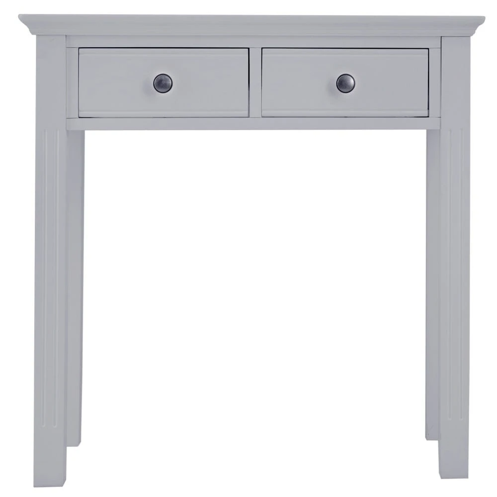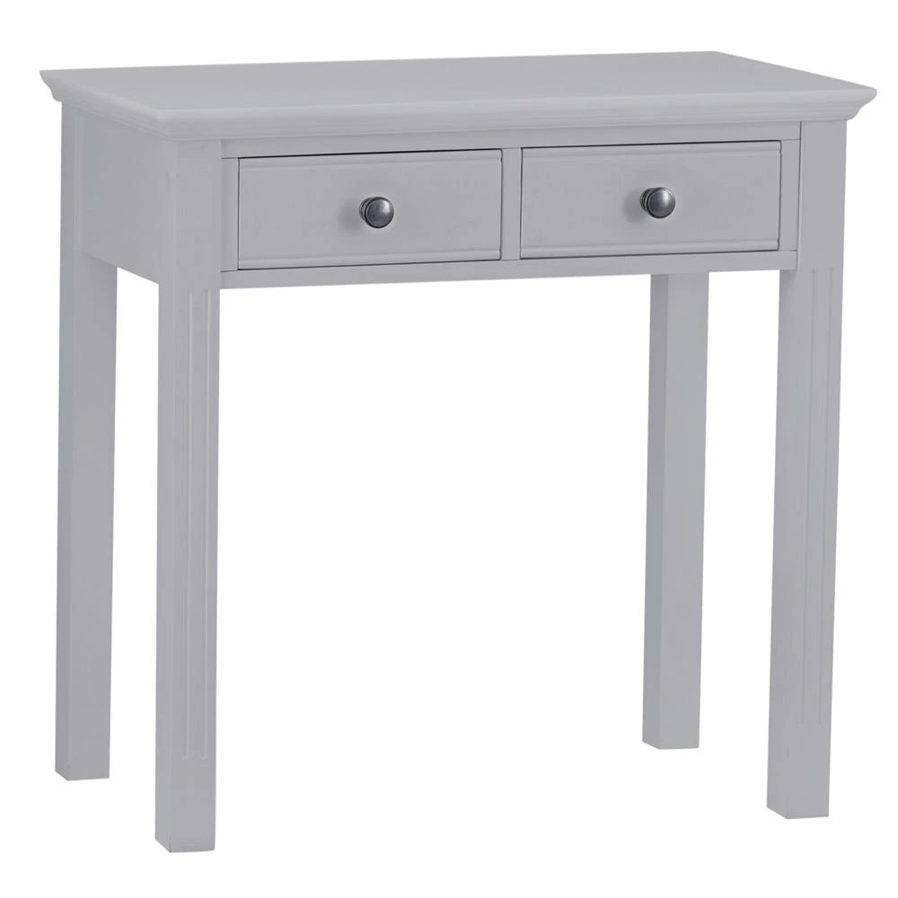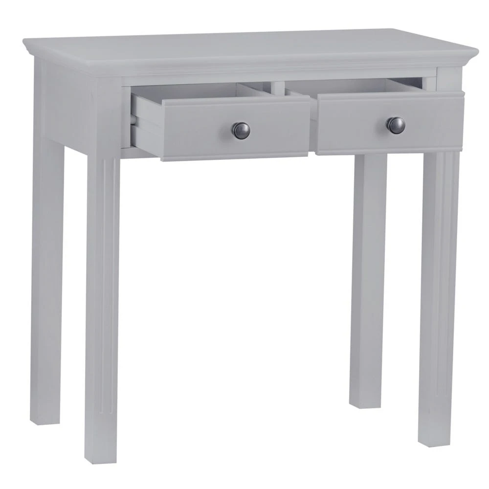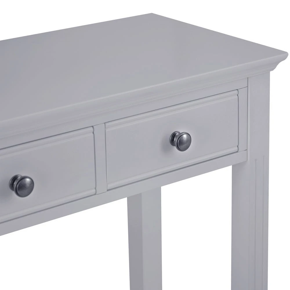 Sit yourself down comfortably on the cushioned stool of the Banbury grey painted dressing table and get ready to look great – whatever the occasion.