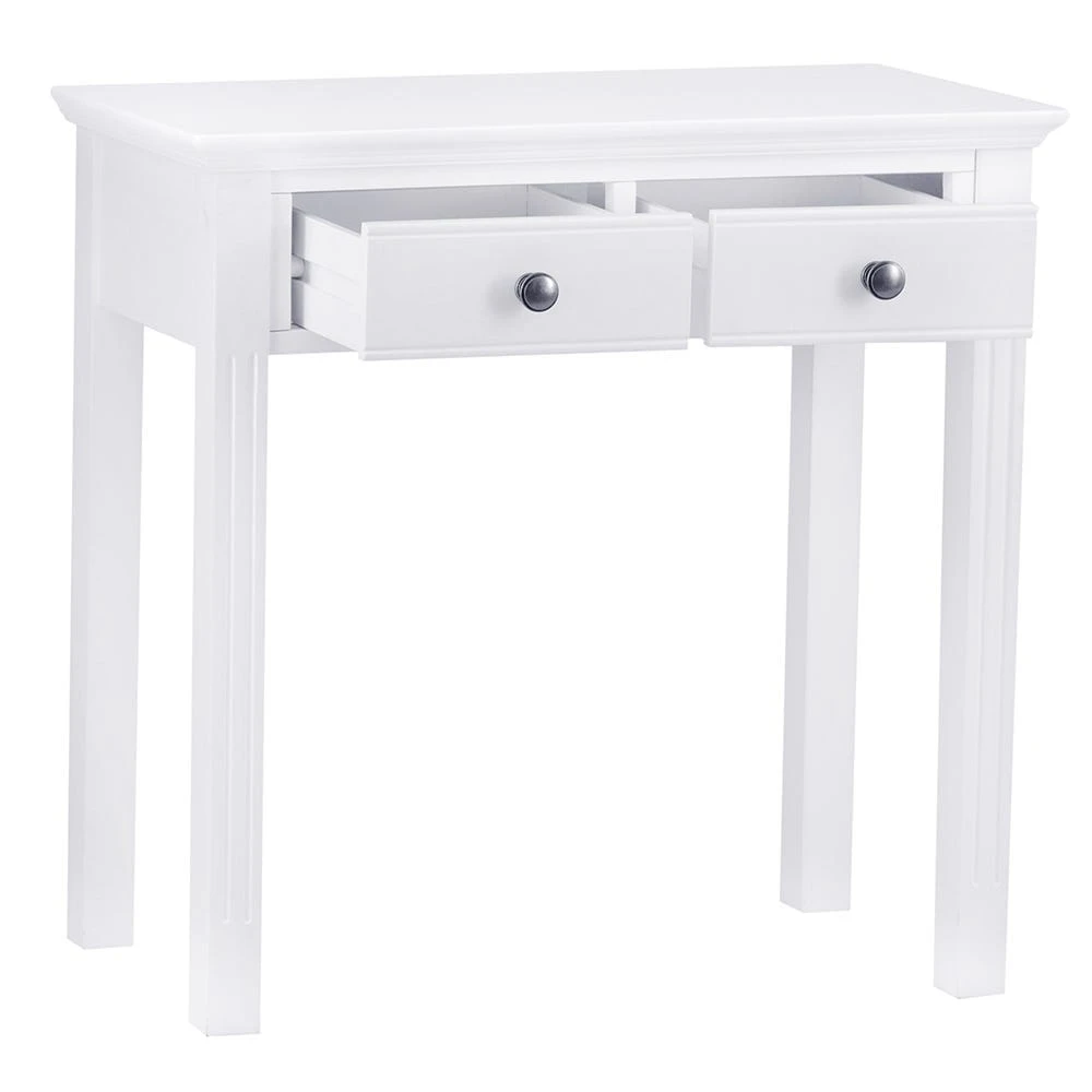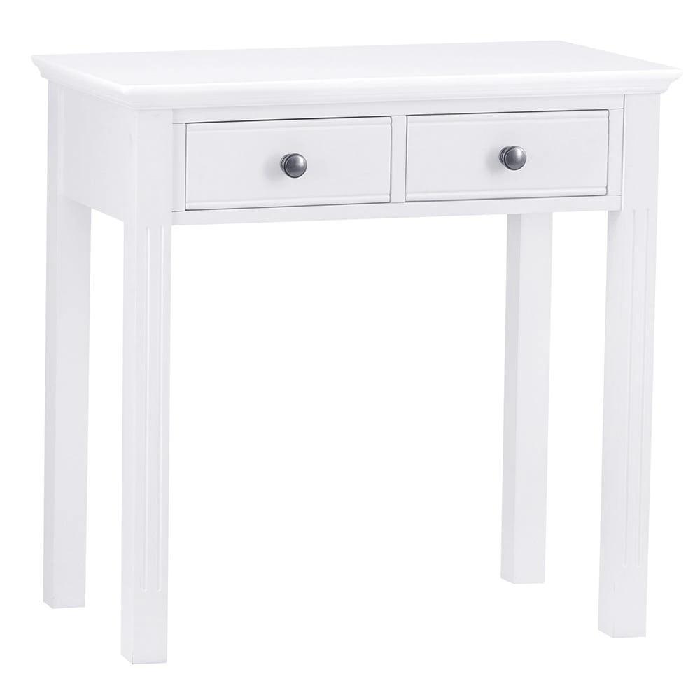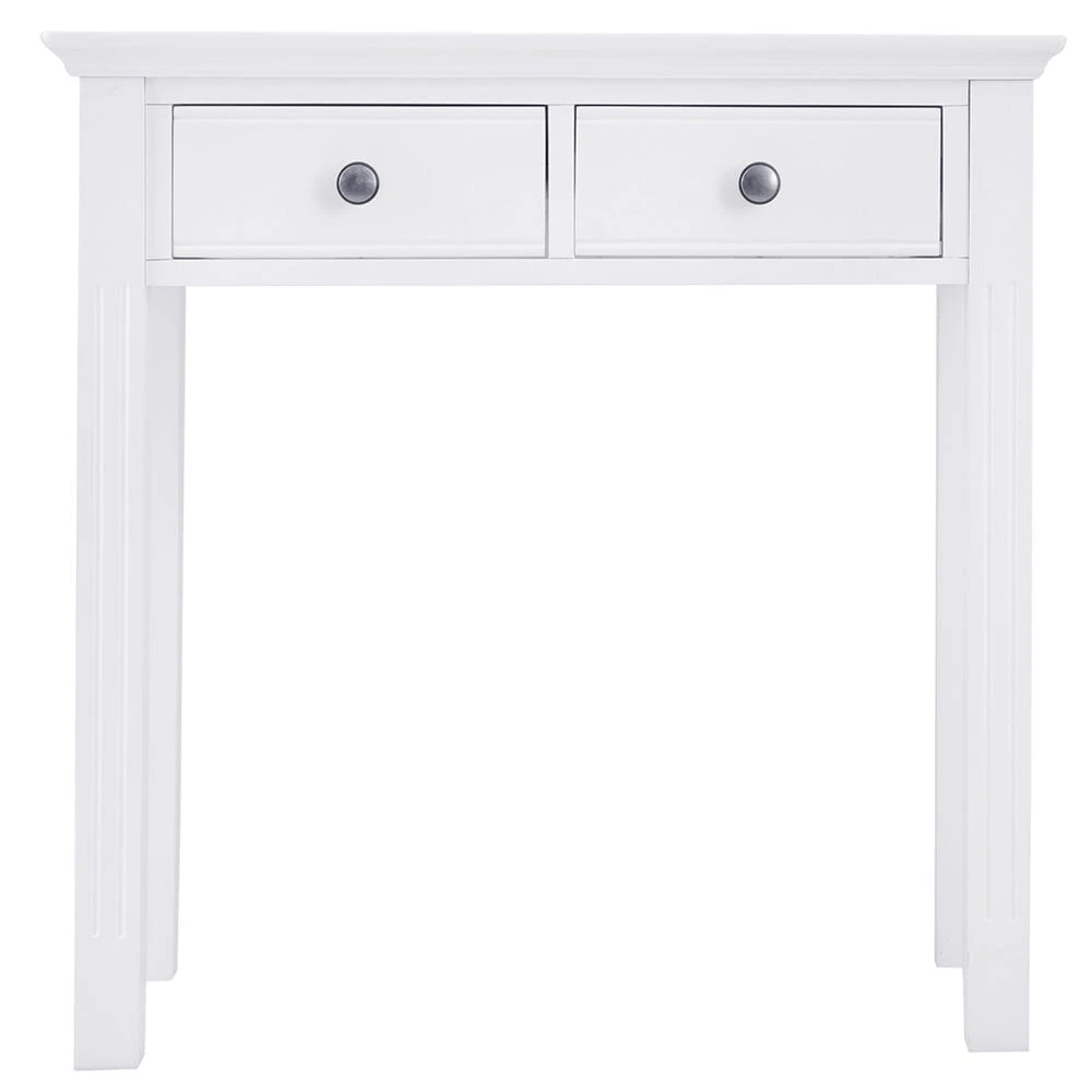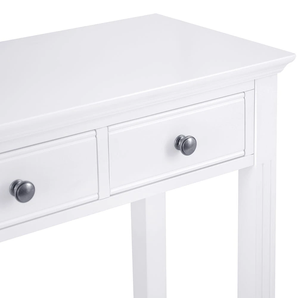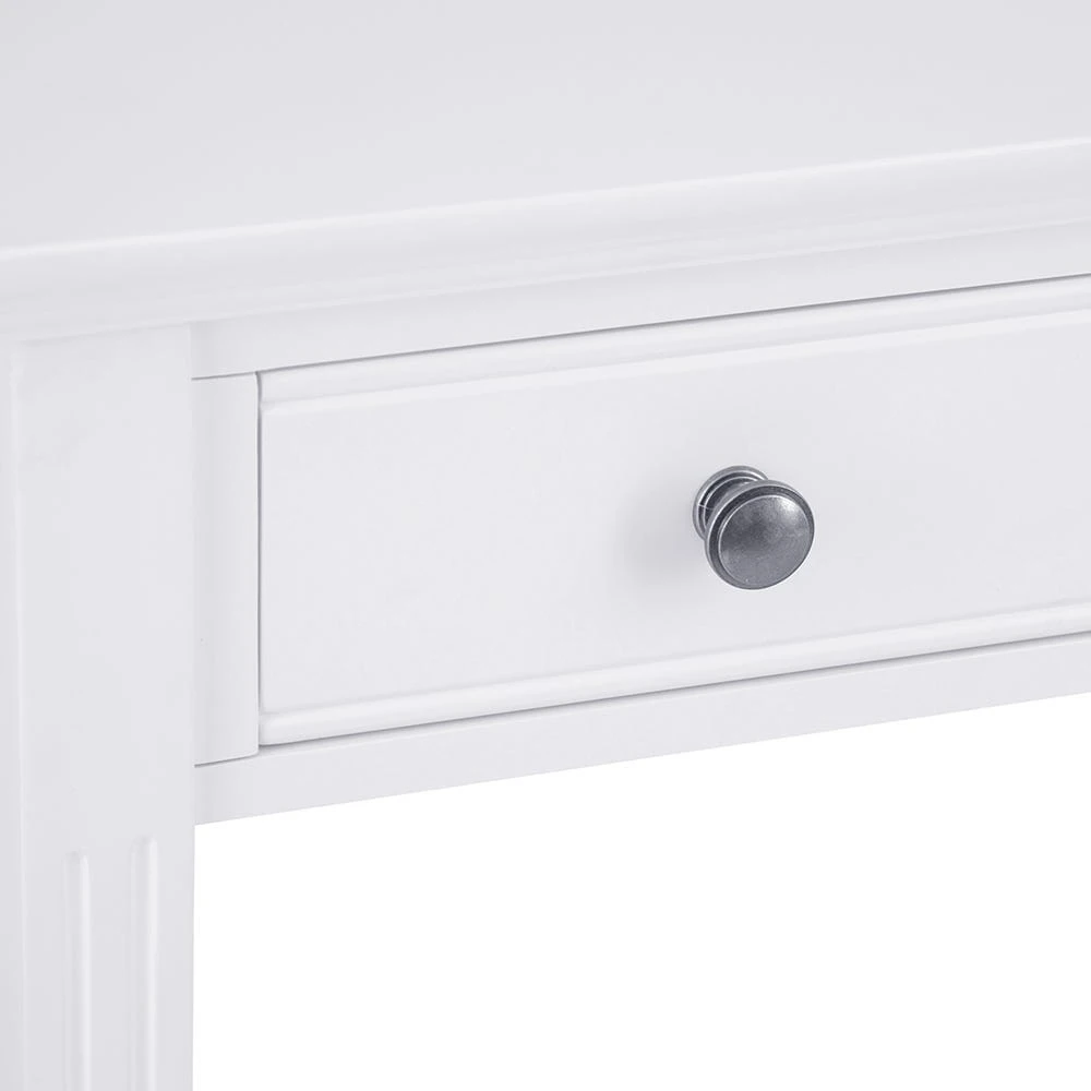 The neatly indented slender legs lend this table finesse and poise, and the white finish will brighten any corner of your bedroom. Complete your dressing table set-up with our matching Banbury white vanity mirror and stool.