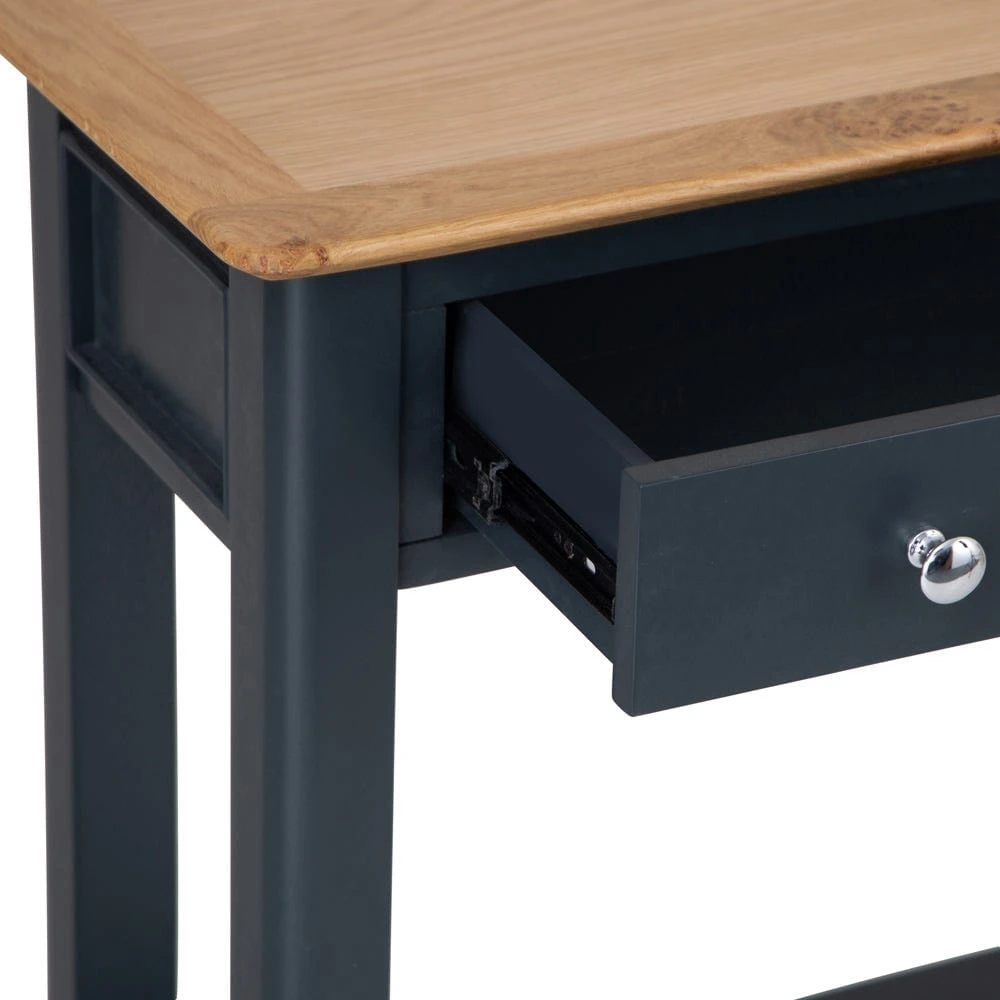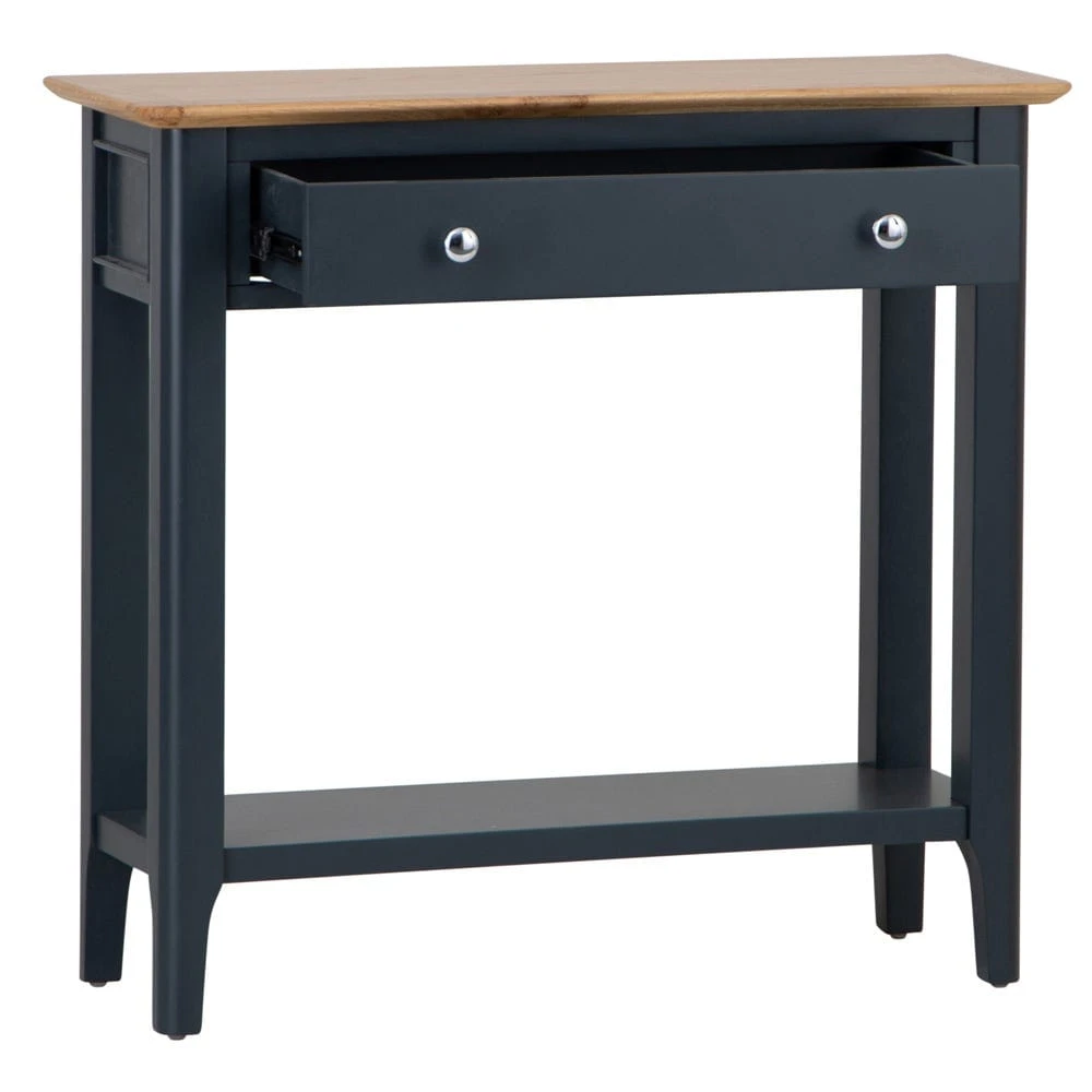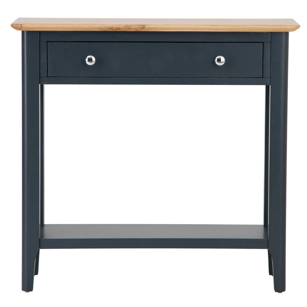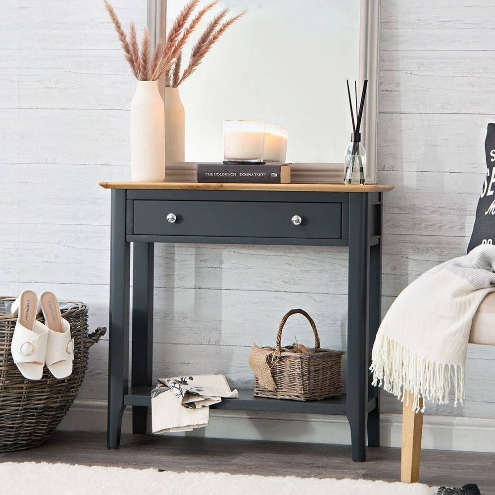 Never wander through the front door and wonder where to put your keys again when you’ve got the Bergen blue painted oak console table stood in your hall.