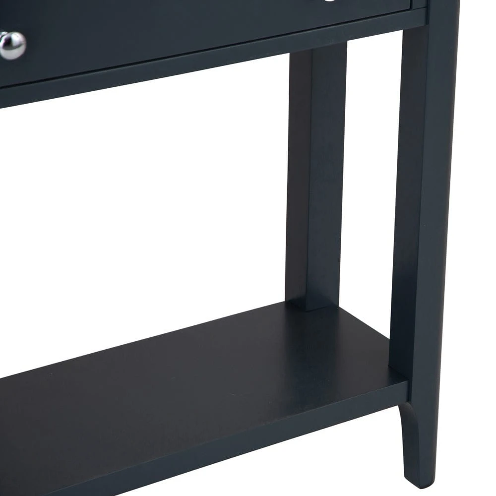 This console table is finished in a beautiful shade of navy blue and looks brilliant placed beneath a wall-mounted mirror.