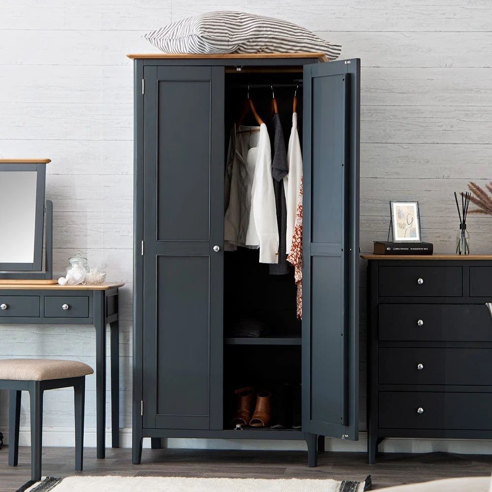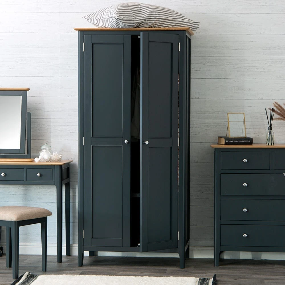 Say hello to the elegant clothes storage solution you’ve been looking for when you add the Bergen blue painted oak double wardrobe to your bedroom furnishings.