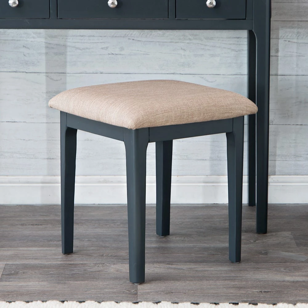 Who’s that getting ready for a night on the town? It’s you, looking smart and sophisticated perched on your Bergen blue painted oak dressing stool.
