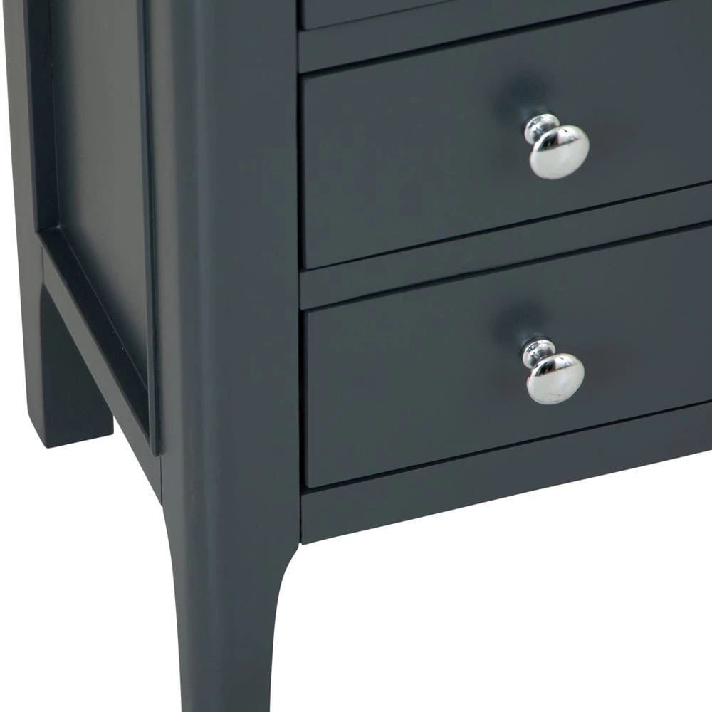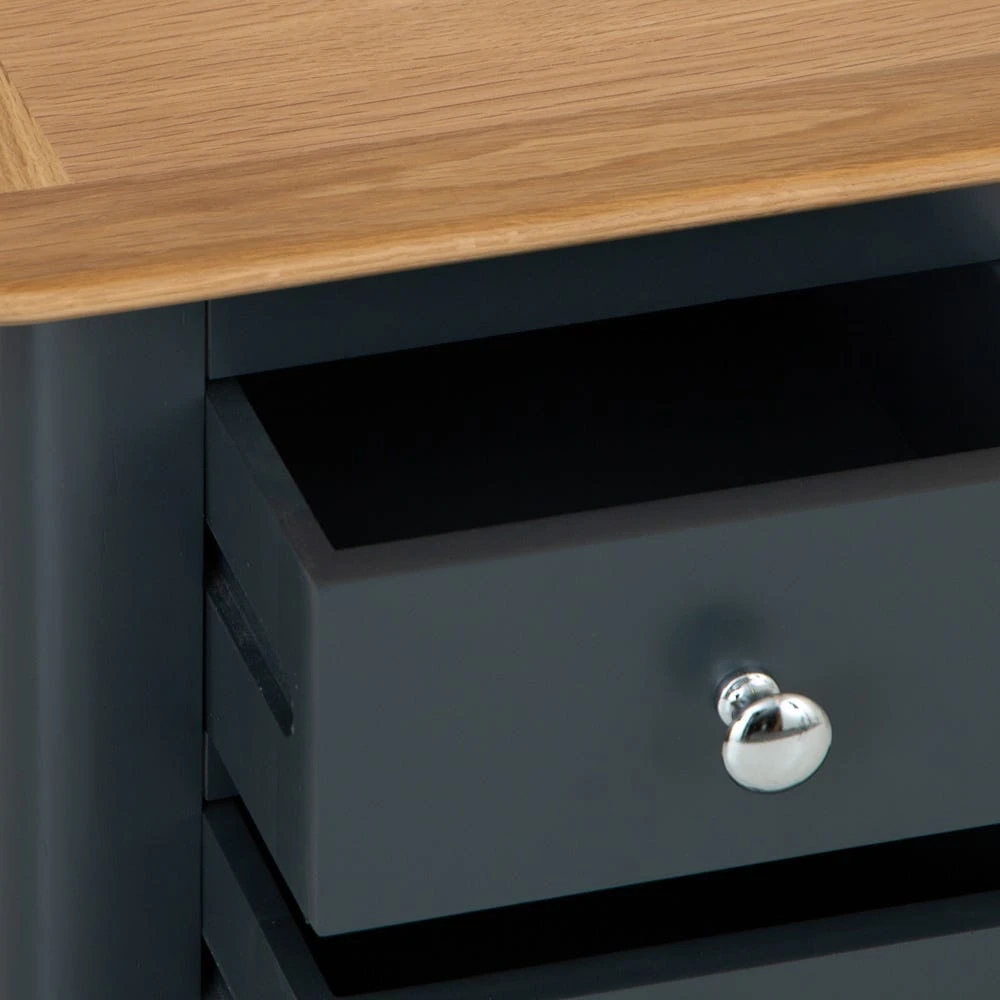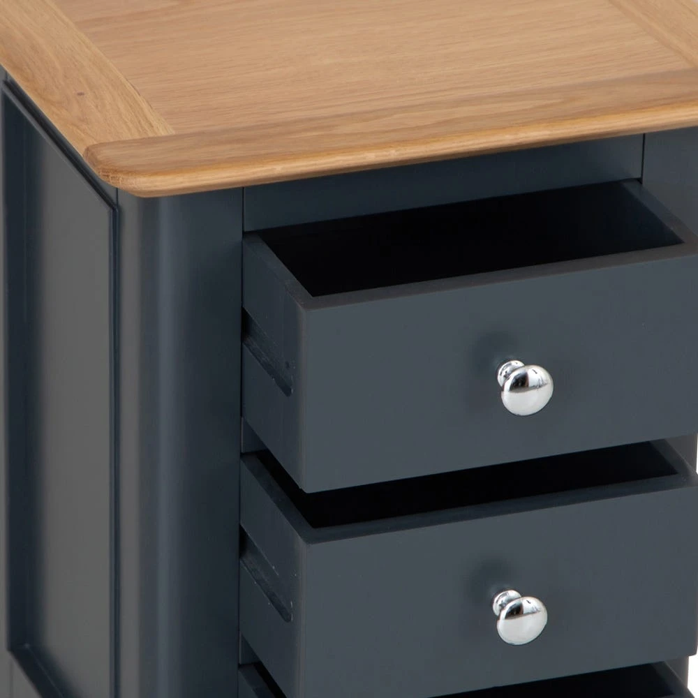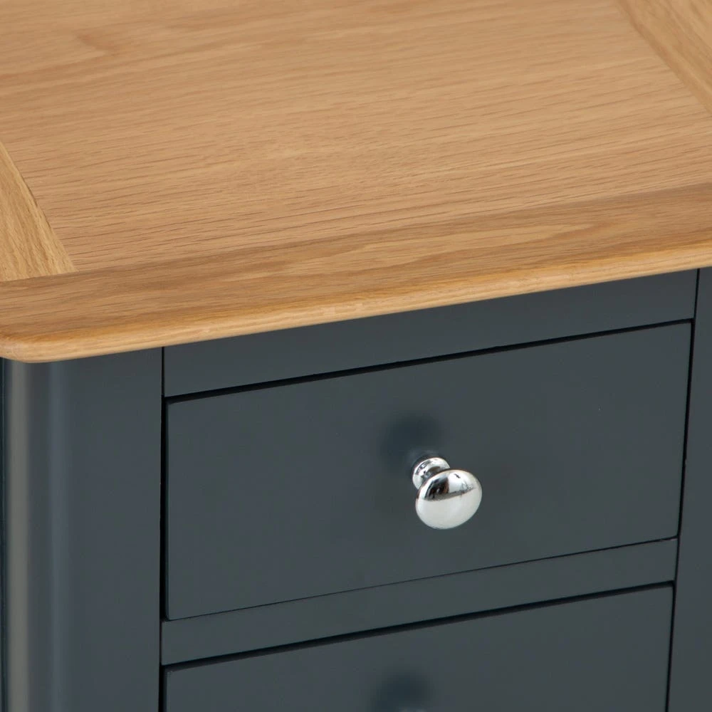 Small but mighty, the Bergen blue painted oak small bedside table sits comfortably next to your cosy bed.