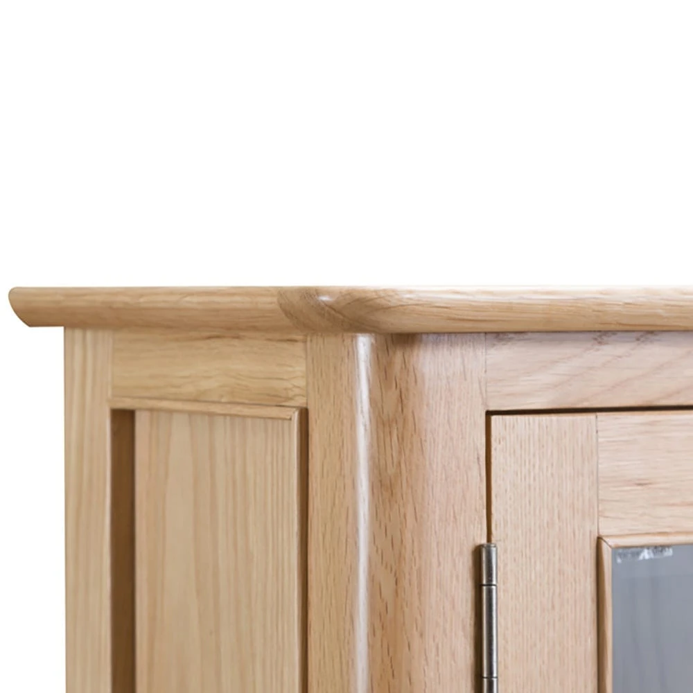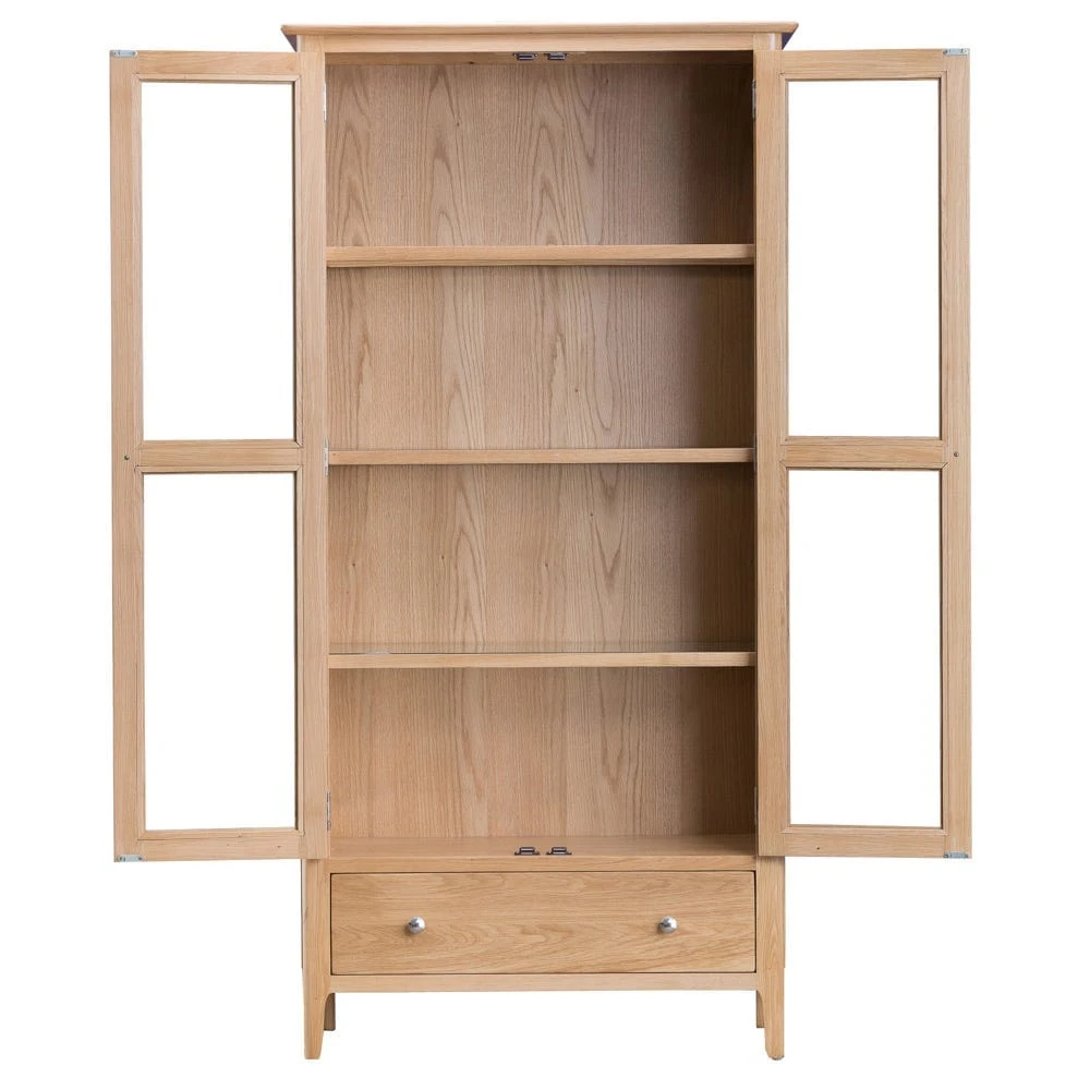 The Bergen oak glass display cabinet is the perfect home for the things you don’t want to keep hidden away. And, even better, it’ll help keep the dust off your favourite ornaments proudly displayed behind its double glass doors.