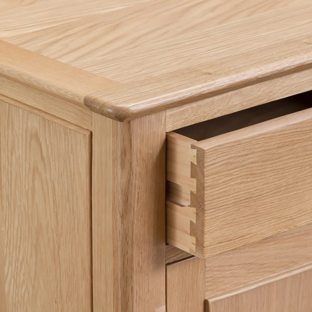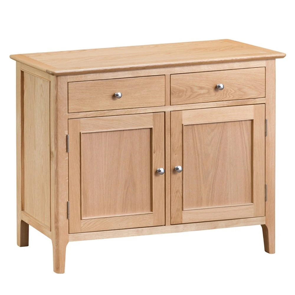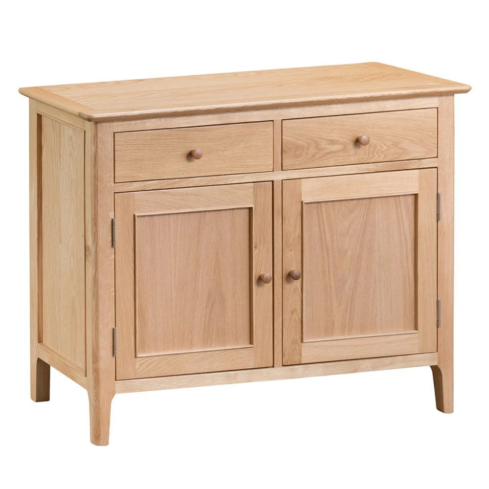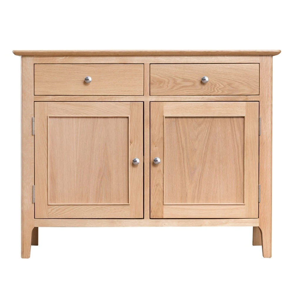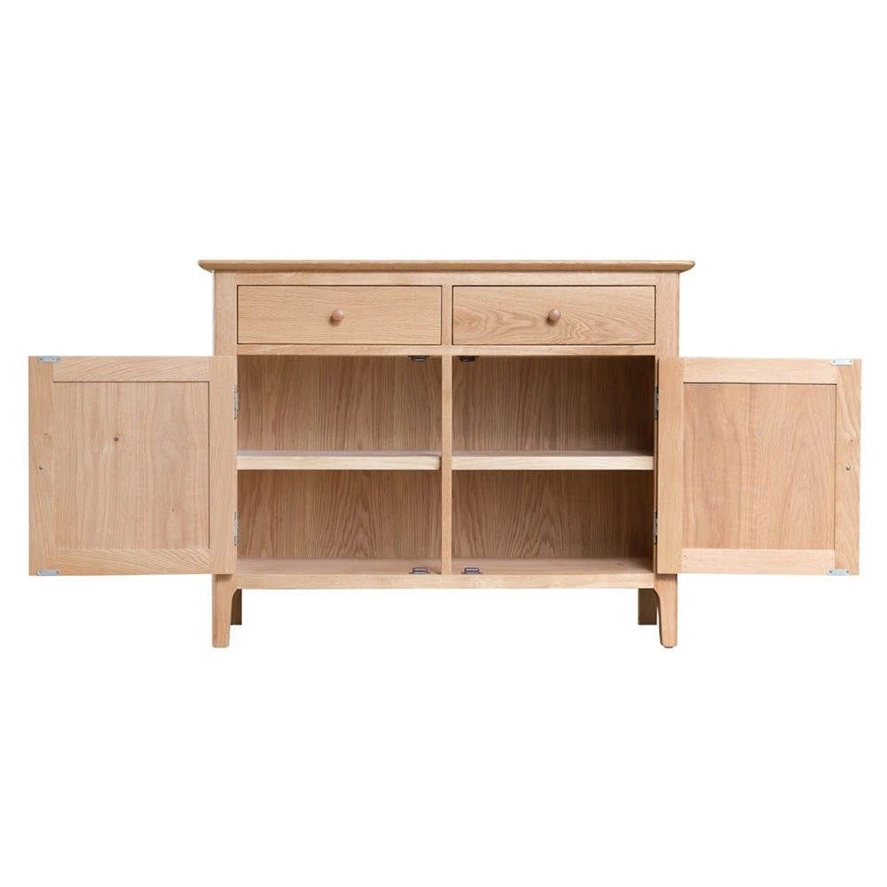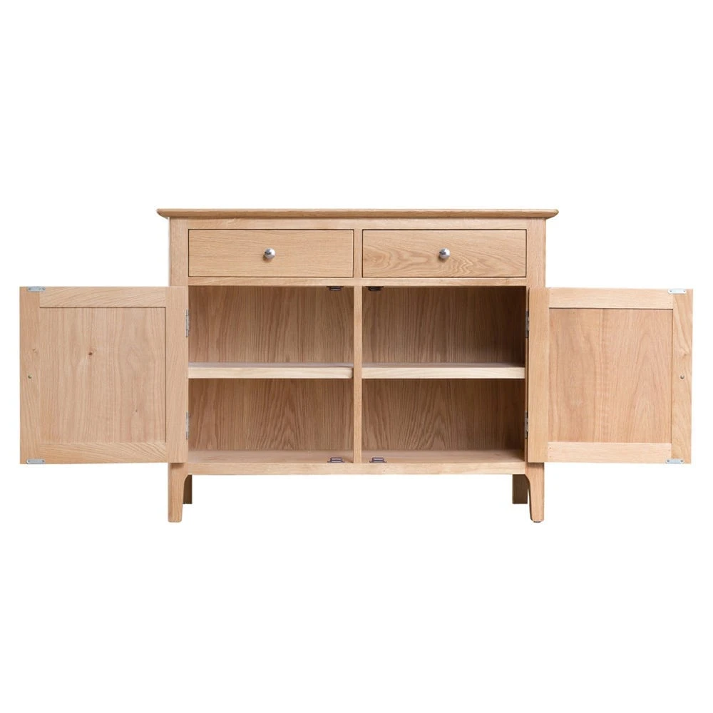 Add convenient storage space, and a touch of sophistication to your next dinner party with the Bergen oak small two-door sideboard.