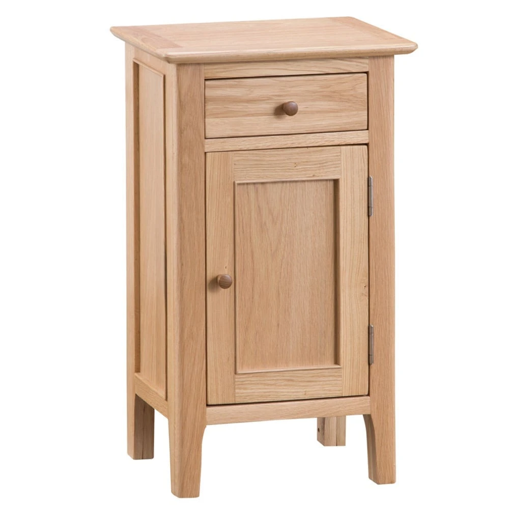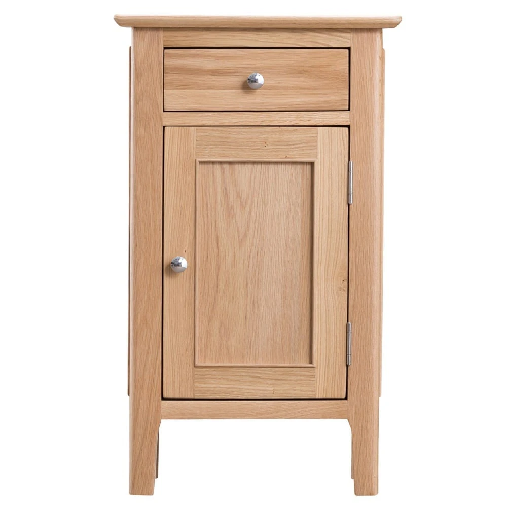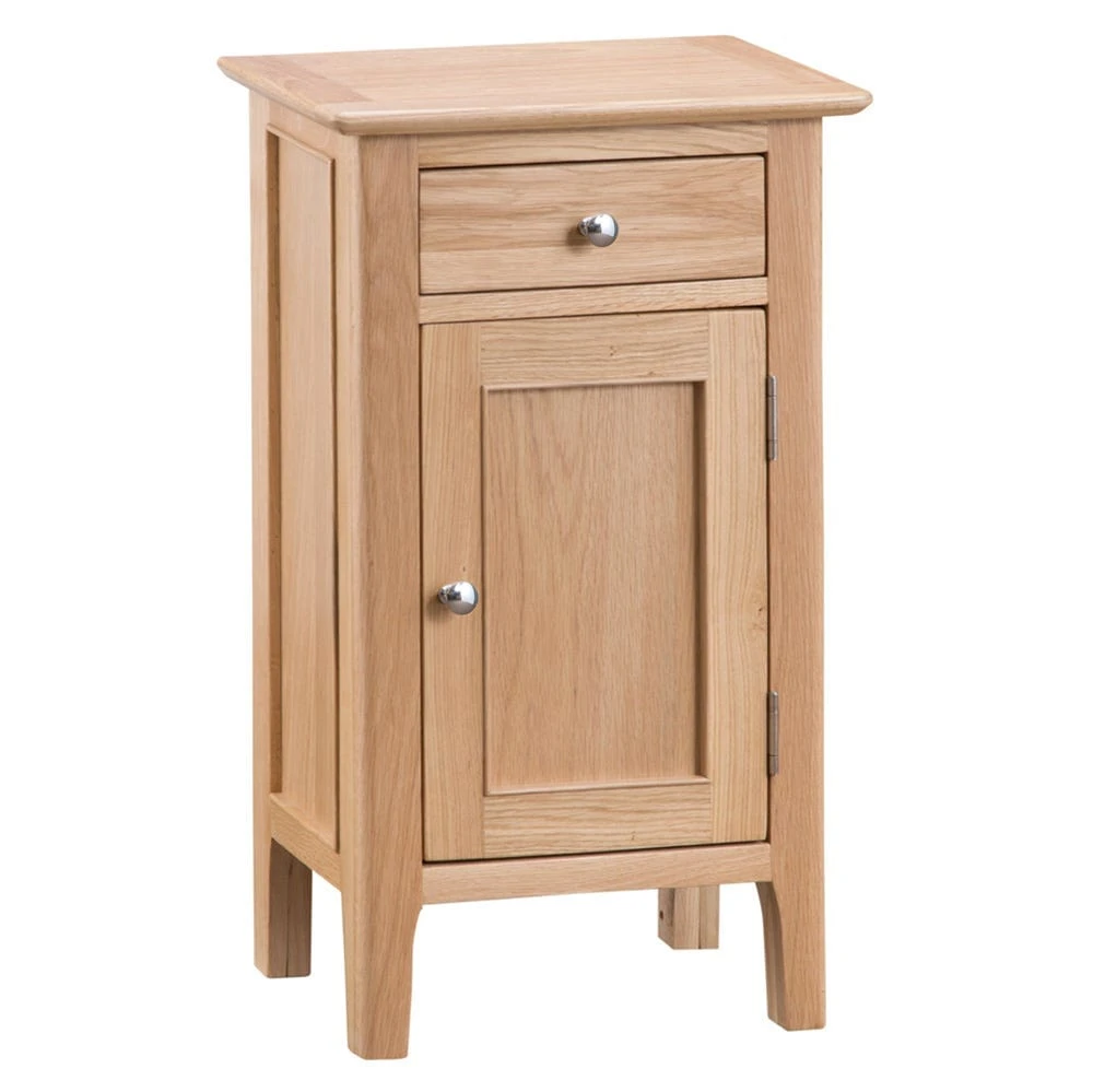 Suave, practical and oh-so cute, the Bergen oak small cupboard makes for a compact yet striking storage solution.