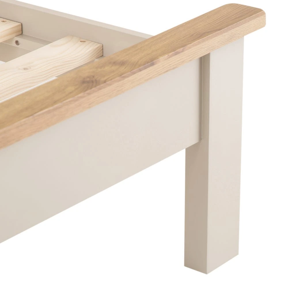 A cool combination of classic rustic farmhouse style offset by a striking oak top, this bed frame makes a suitable centrepiece for bedrooms both modern and classic.