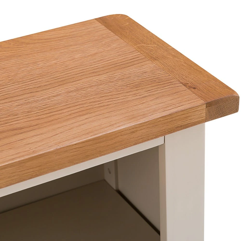 Finished in gloriously subtle stone grey, the countryside appeal of this thick bookcase is beautifully offset by the oak wood top surface.