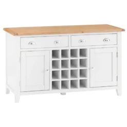 Chester White Painted Oak 2 Door Large Sideboard With Wine Rack