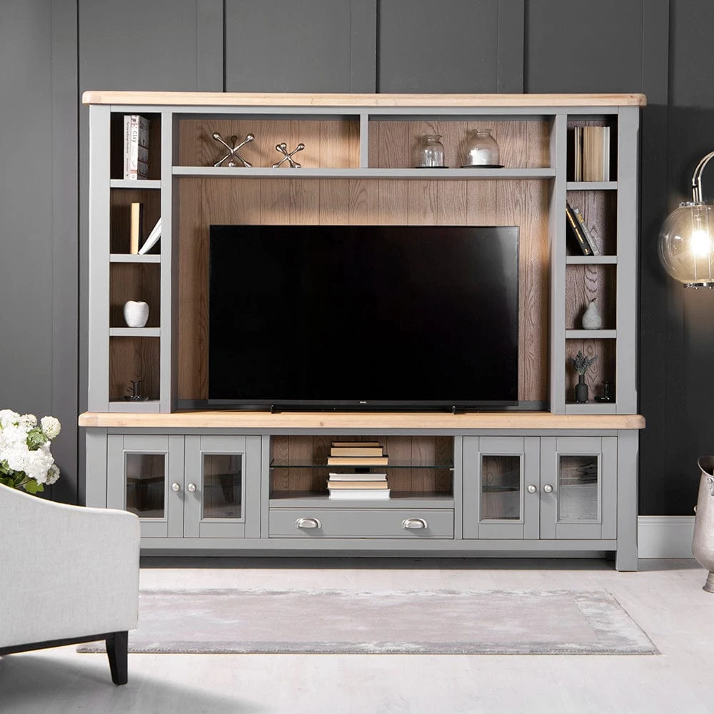 for even more storage, complete your viewing experience with this fine grey TV unit.