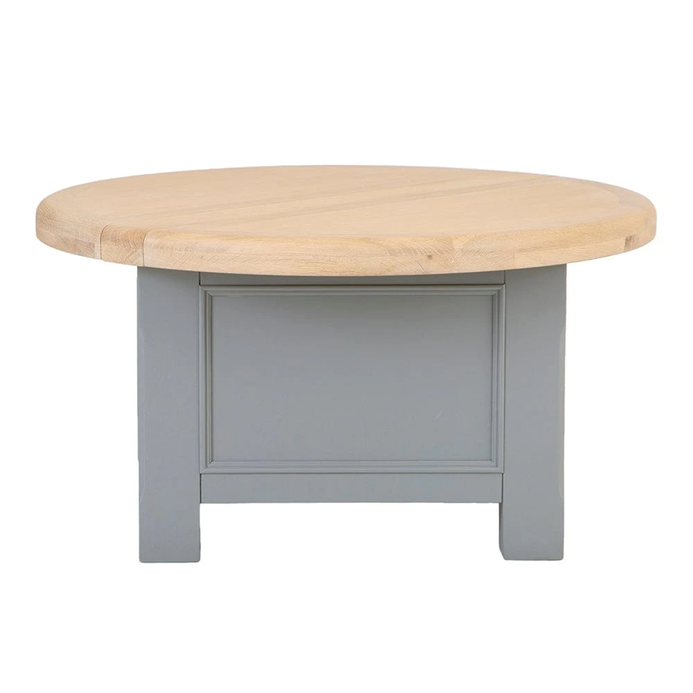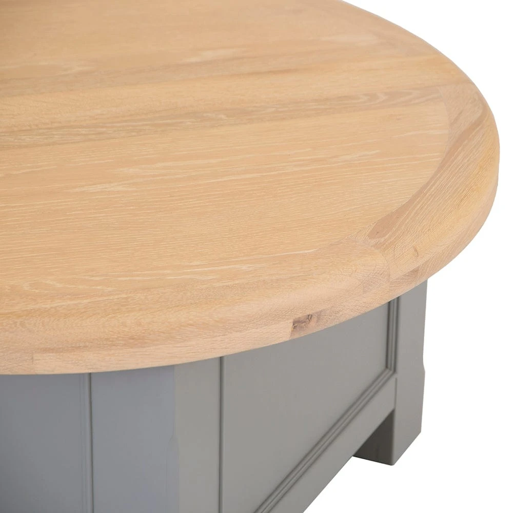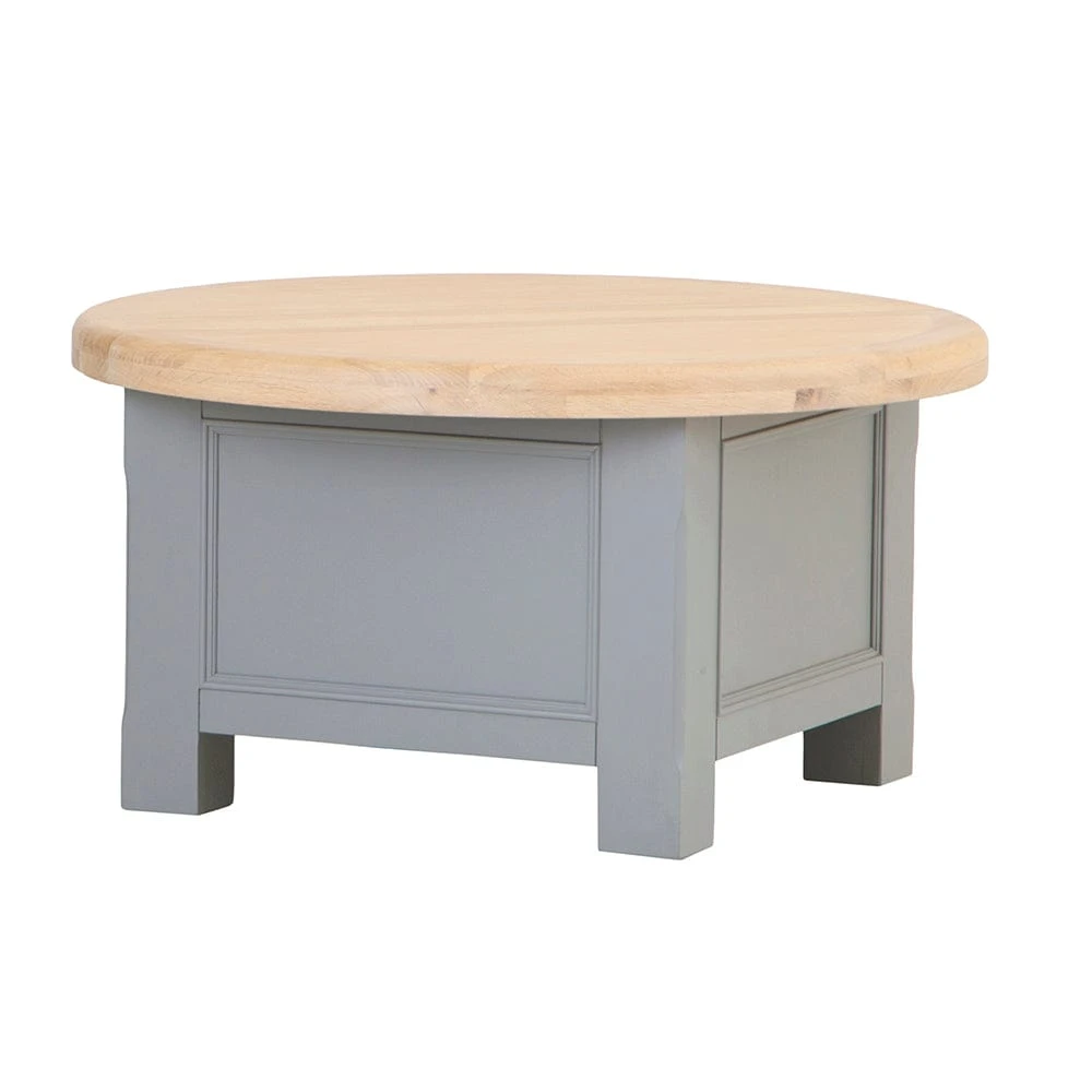 A coffee table with character can be hard to come by but this fantastic round coffee table with storage combines a concealed storage solution into a gorgeous-looking and practical package. Lending an air of sophistication to whichever area it’s in, the chunky washed oak top is rounded for a more inclusive feel to coffee mornings giving plenty of room to gather around. Hinged underneath, it folds open to reveal ample space inside the painted table to put books, boots, and other bric-a-brac away so that you can keep your living area neat and always looking great for company.