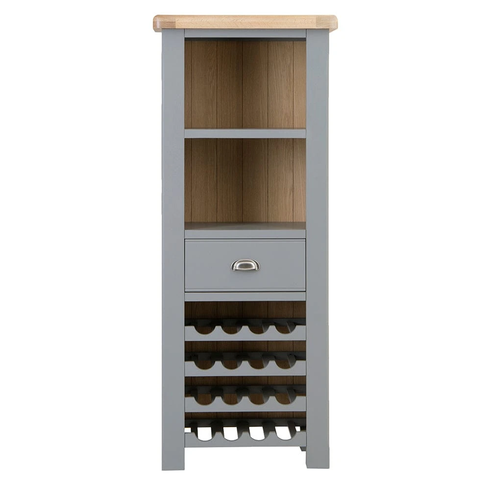 Slender and sophisticated, this tall wine cabinet is perfect for those that don’t want a wideset piece of furniture taking up too much floor space. Sleek, chic, and elegant, the shelves at the top can act as a cabinet bar for liquors, glasses, and assorted accessories whilst the wine racks at the base of the piece mean there’s no need for a wine cupboard as you can keep your bottle collection organised and on display.
