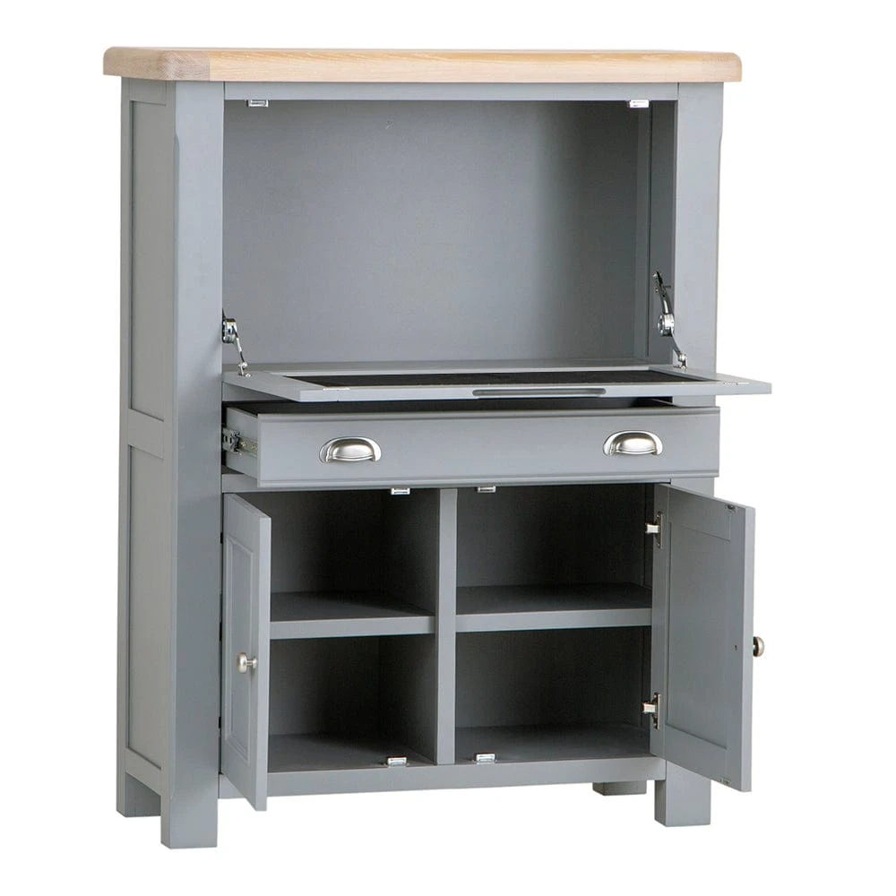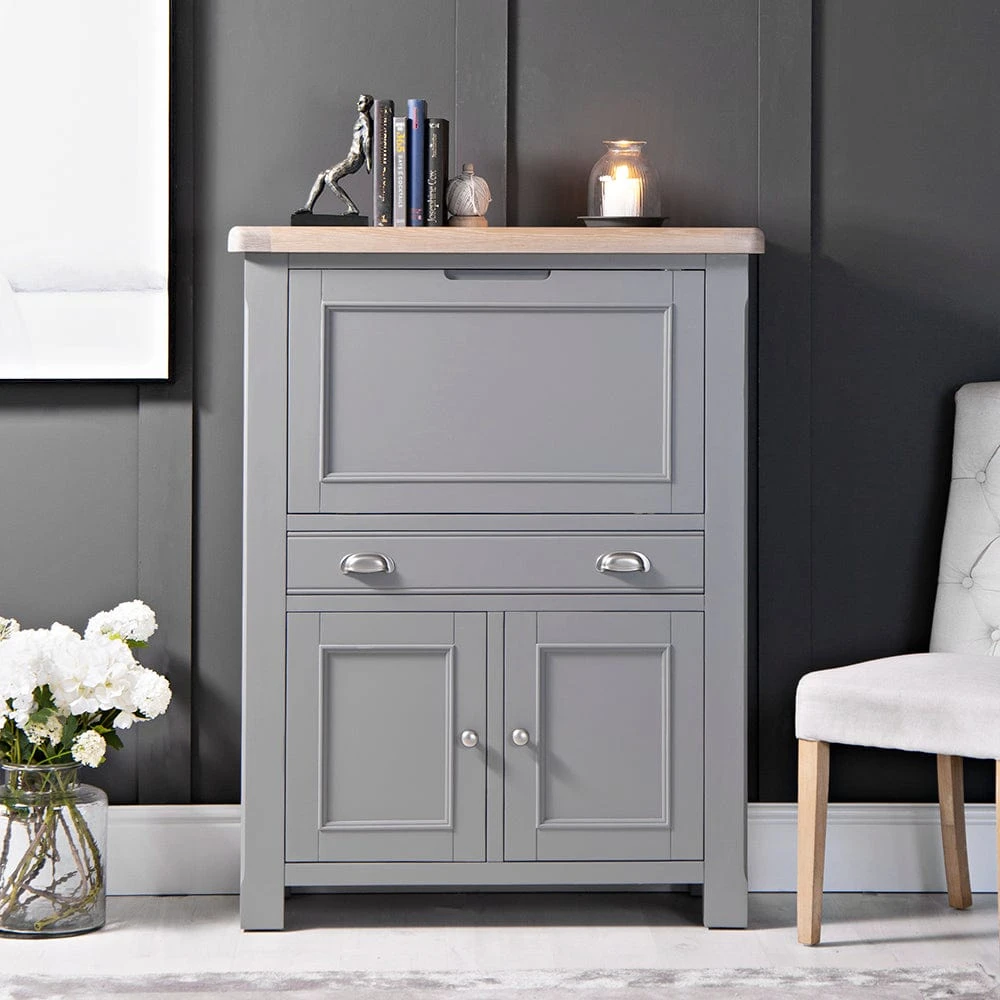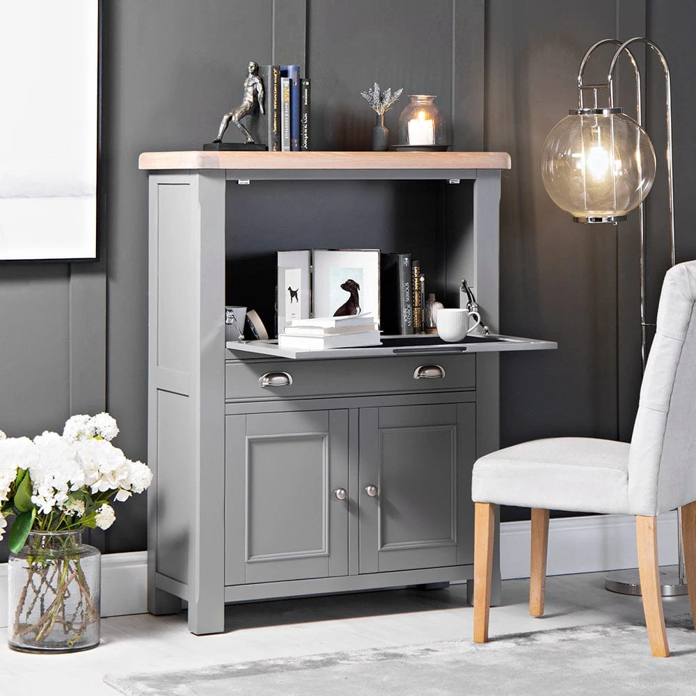 Refined elegance comes part and parcel with a luxurious writing bureau of one’s own and this Dorset Storm Grey bureau unit has those in abundance. With crisp straight lines and a calming soft grey colour pallet that is able to complement almost any décor, this sophisticated bureau also provides excellent storage space for writing equipment and other office necessities.