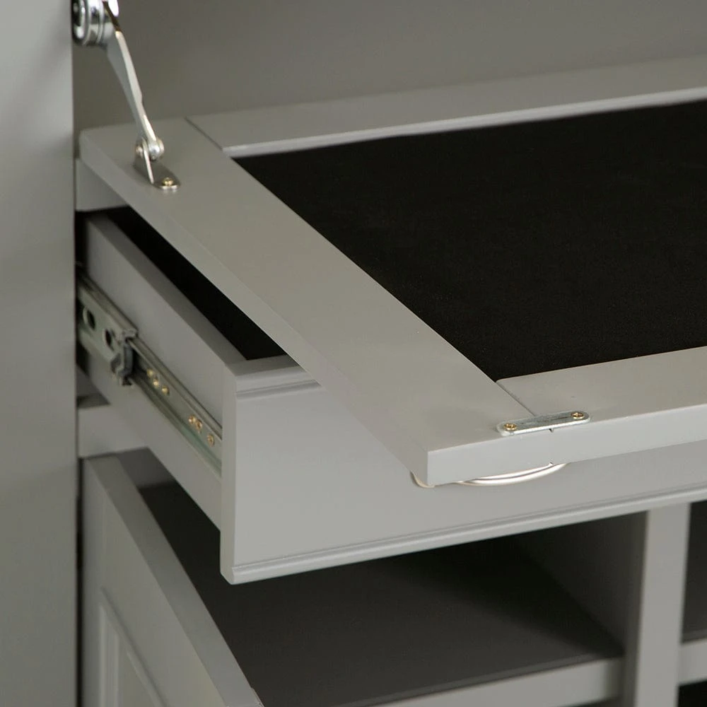 With storage cabinets at the base, that have soft-close doors and fixed shelving, you can keep all of your vital documents, drafts, and anything else, organised and easily to hand. The drawer above sits on sturdy metal runners and has stylish cup handles and you can simply flap down the concealed writing desk for a perfect place to write your correspondence or create the next great thing in literature. The hidden hinges make it easy to pack it neatly and unobtrusively away when you’re done for the day.