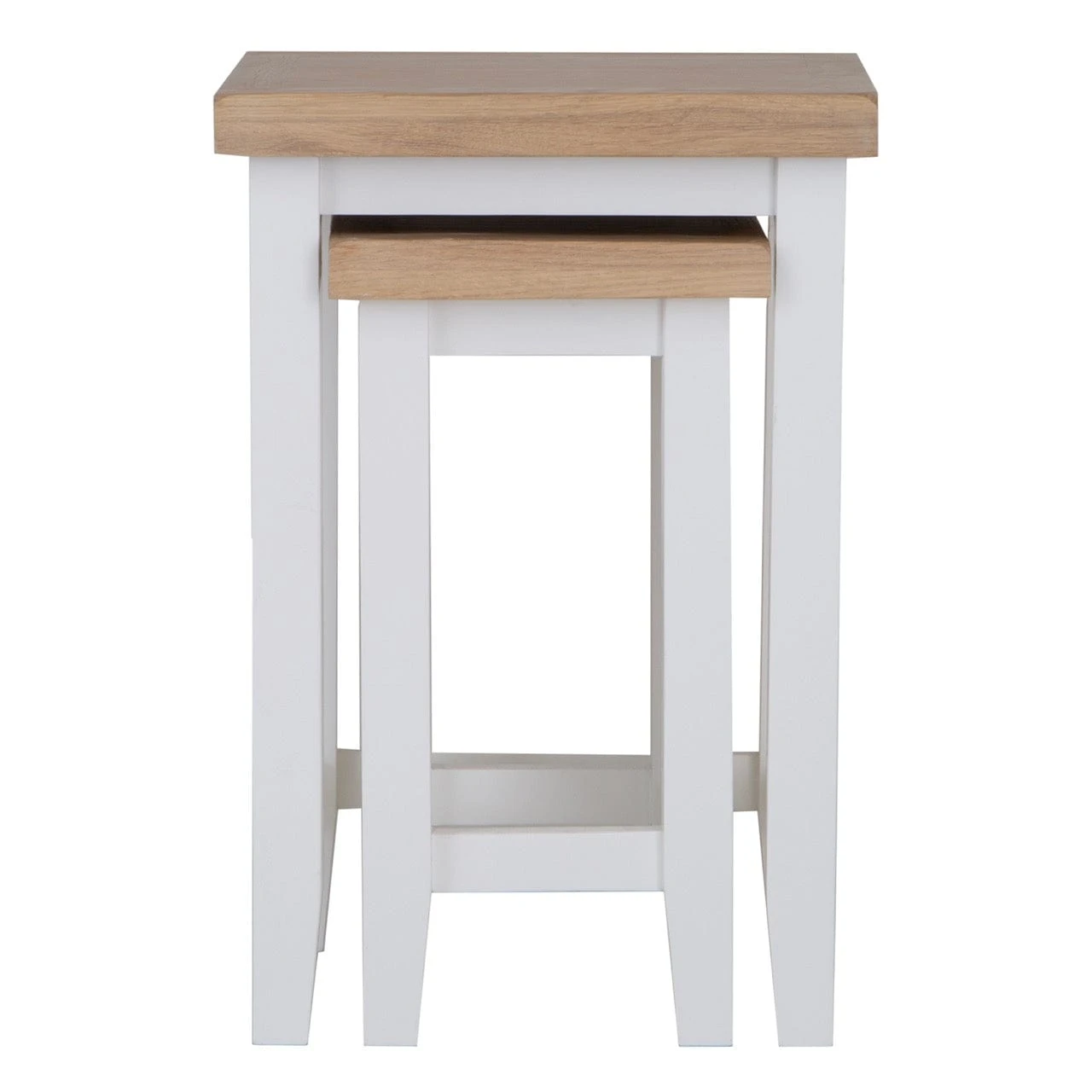 The Eaton White Painted Oak Nest of 2 Tables, are a versatile and charming addition to your home. Two white nested side tables with pale lime wash top, these functional and beautiful items of furniture bring a sense of elegance of sophistication to your living space.