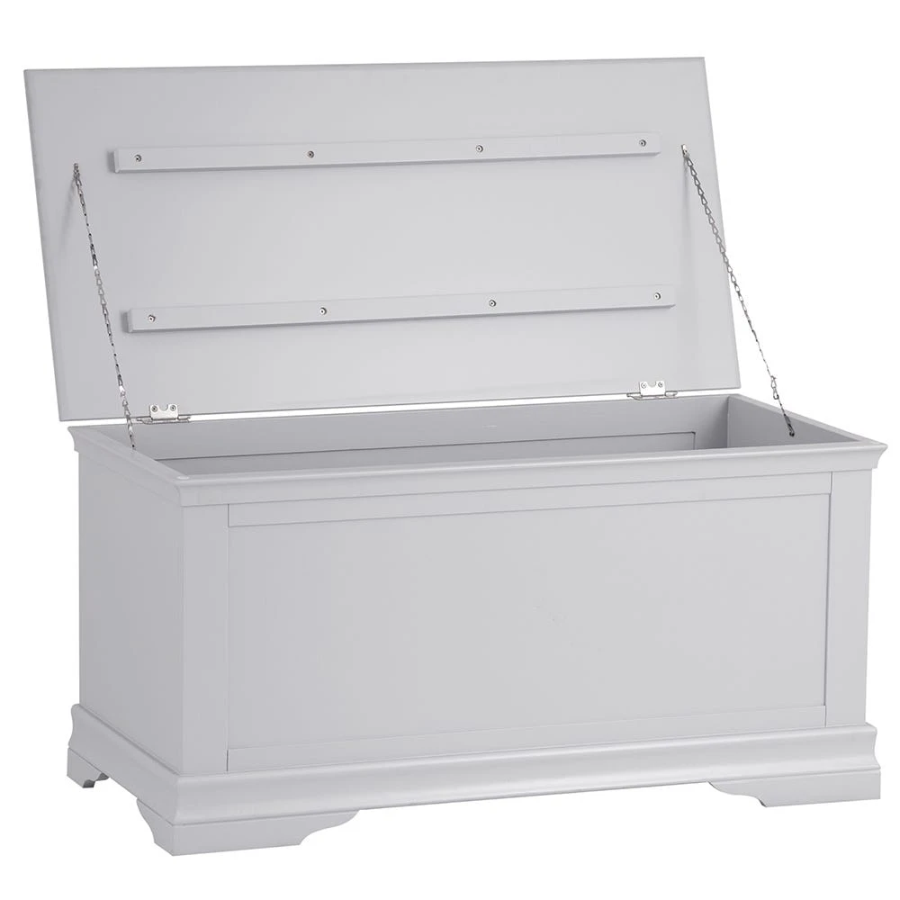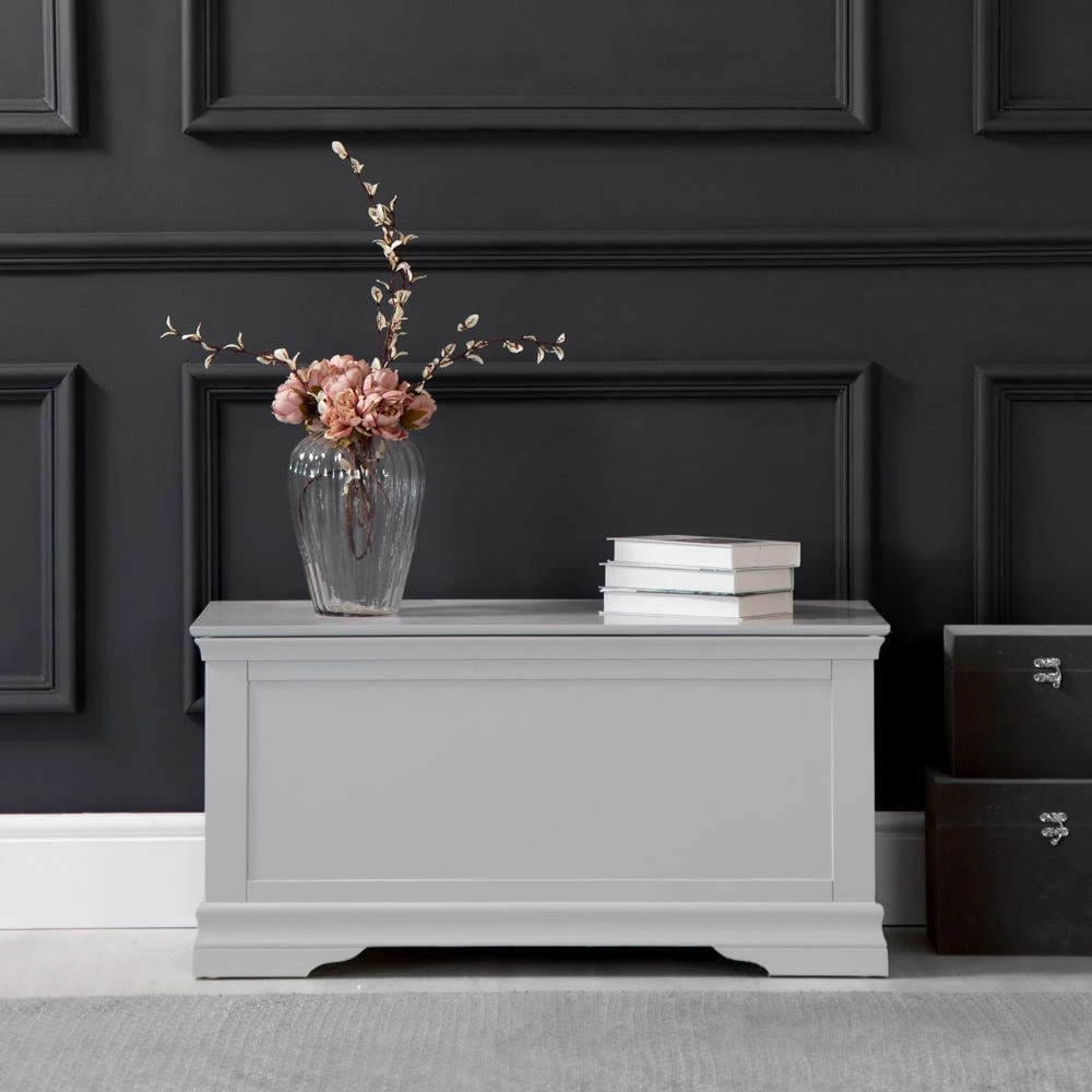 Enhance your home with a place to store your very softest furnishings with the Florence grey painted blanket box.