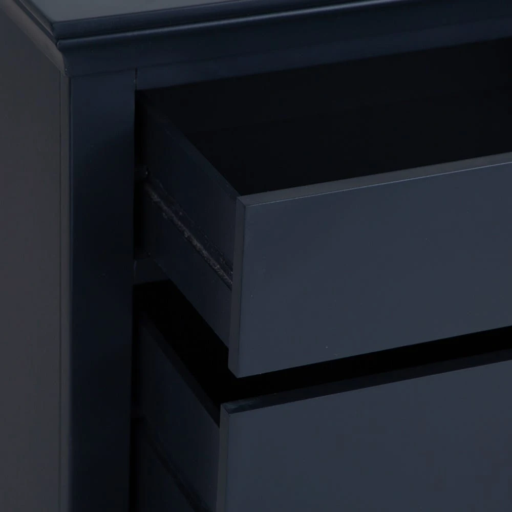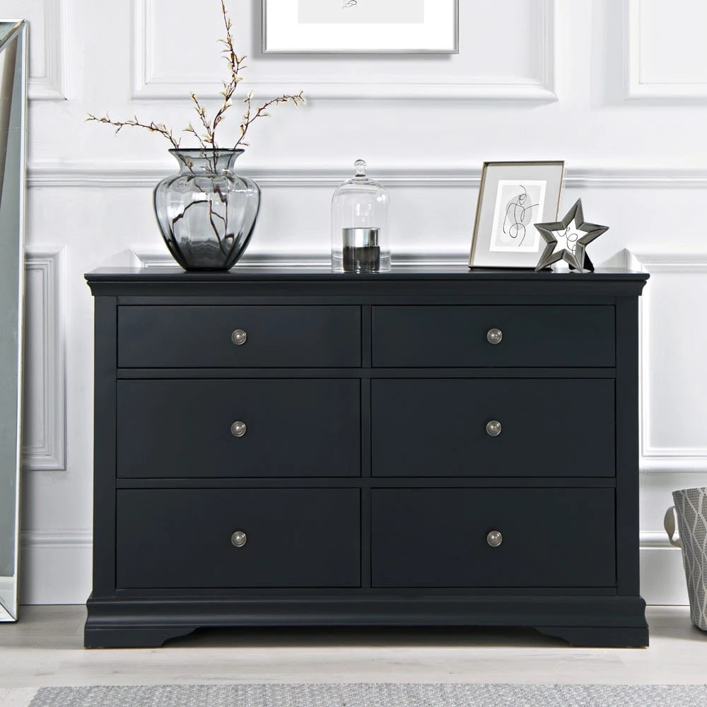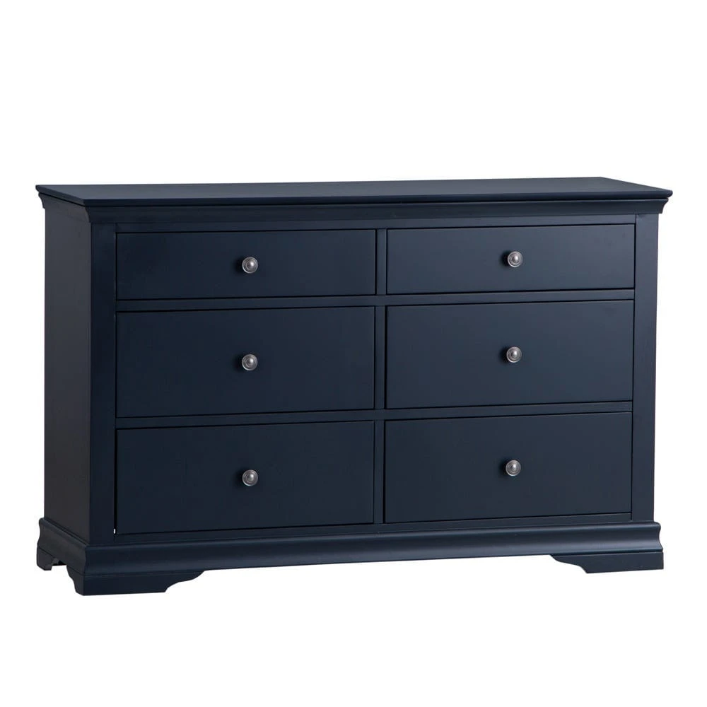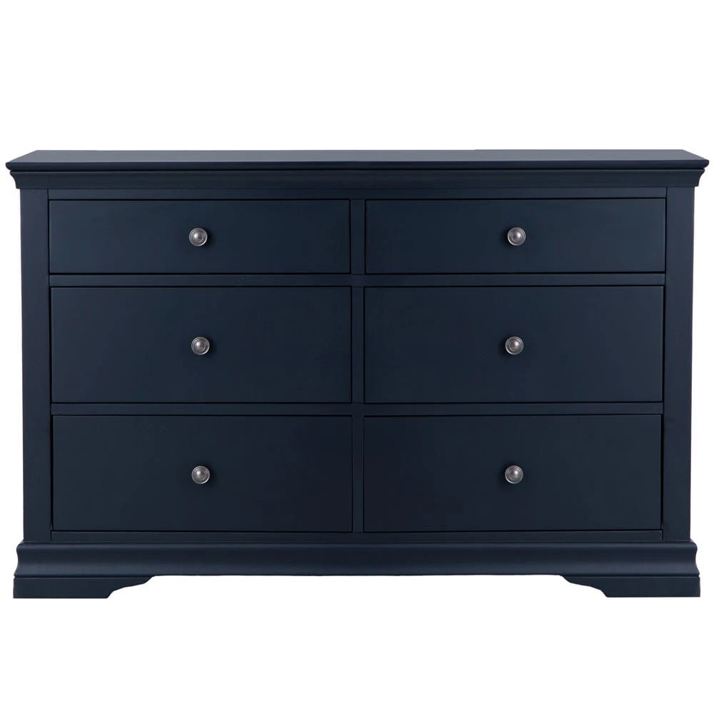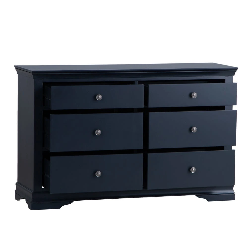 Arriving fully assembled, all that remains for you to do is decide what you’re going to store in the Florence midnight grey painted six drawer chest.