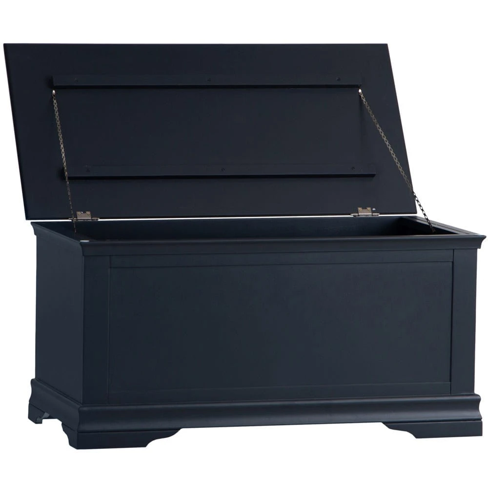 Finished in a rich shade of deepest grey, this blanket box will add tranquil tones to your existing bedroom interior. From its cornice edged top surface to its opulent bracket feet, this is a finely crafted piece of furnishing.