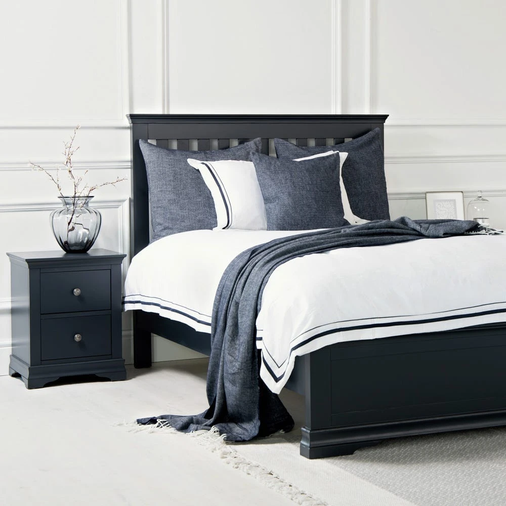 Drift off to a peaceful slumber every night supported by the Florence midnight grey painted double bed frame.