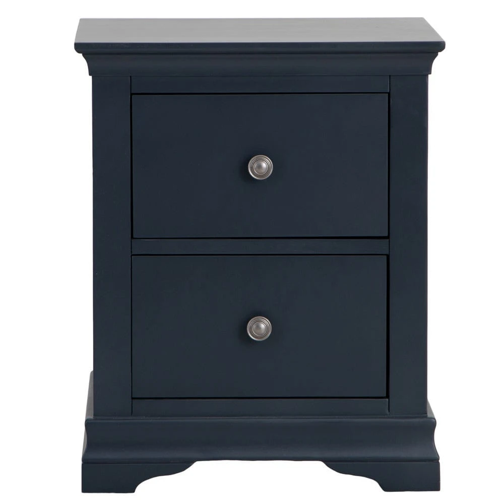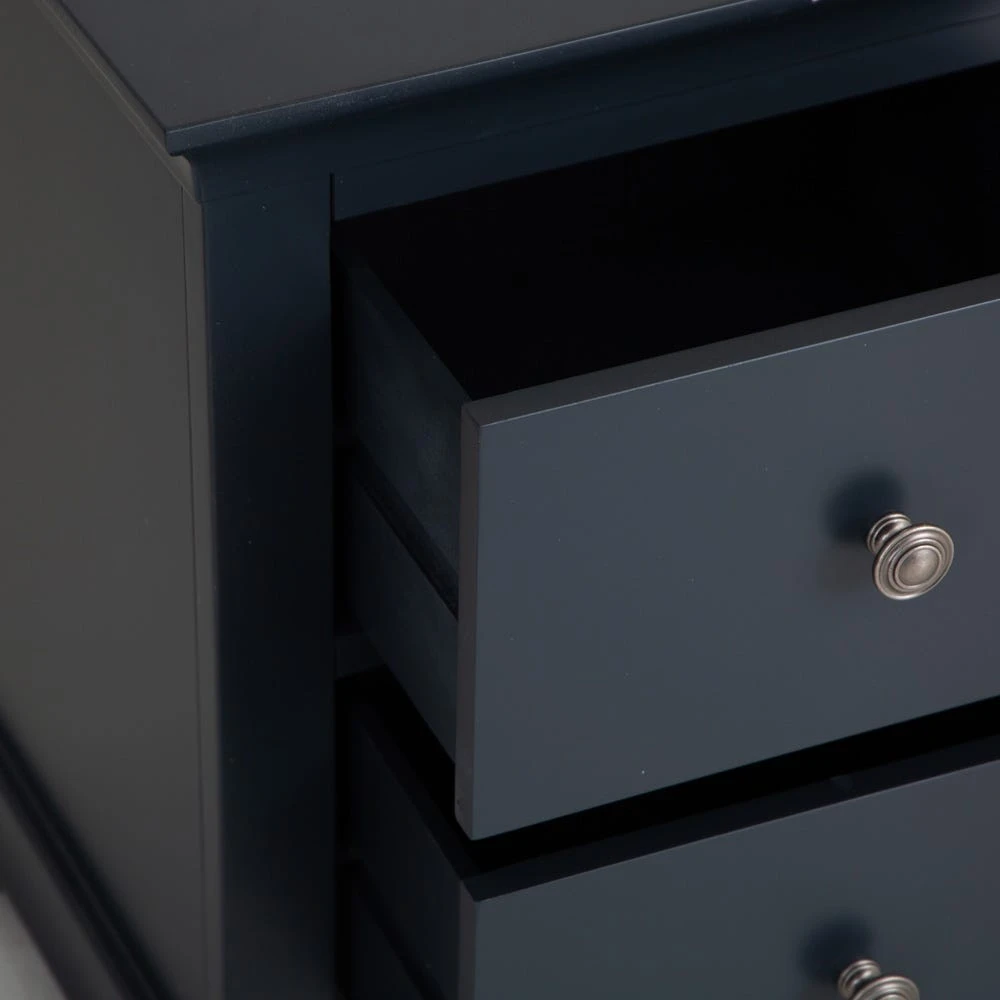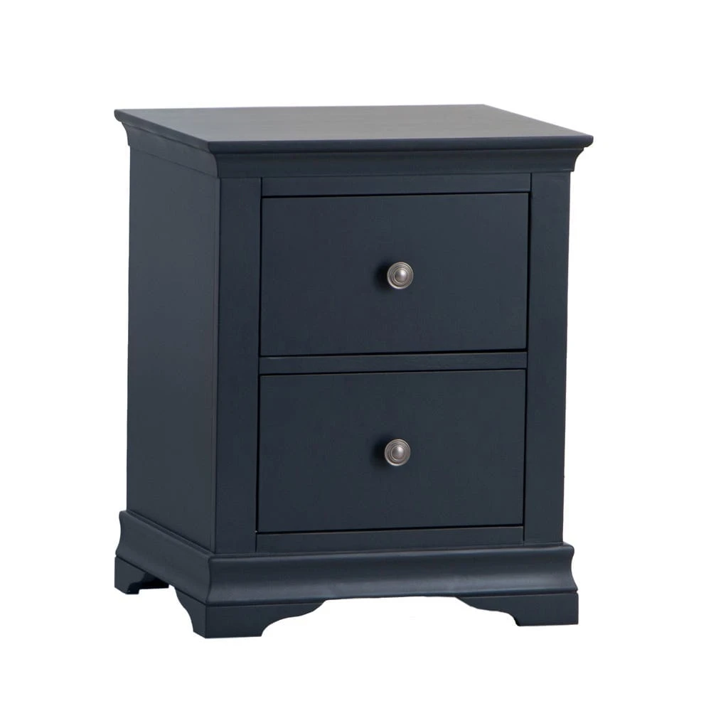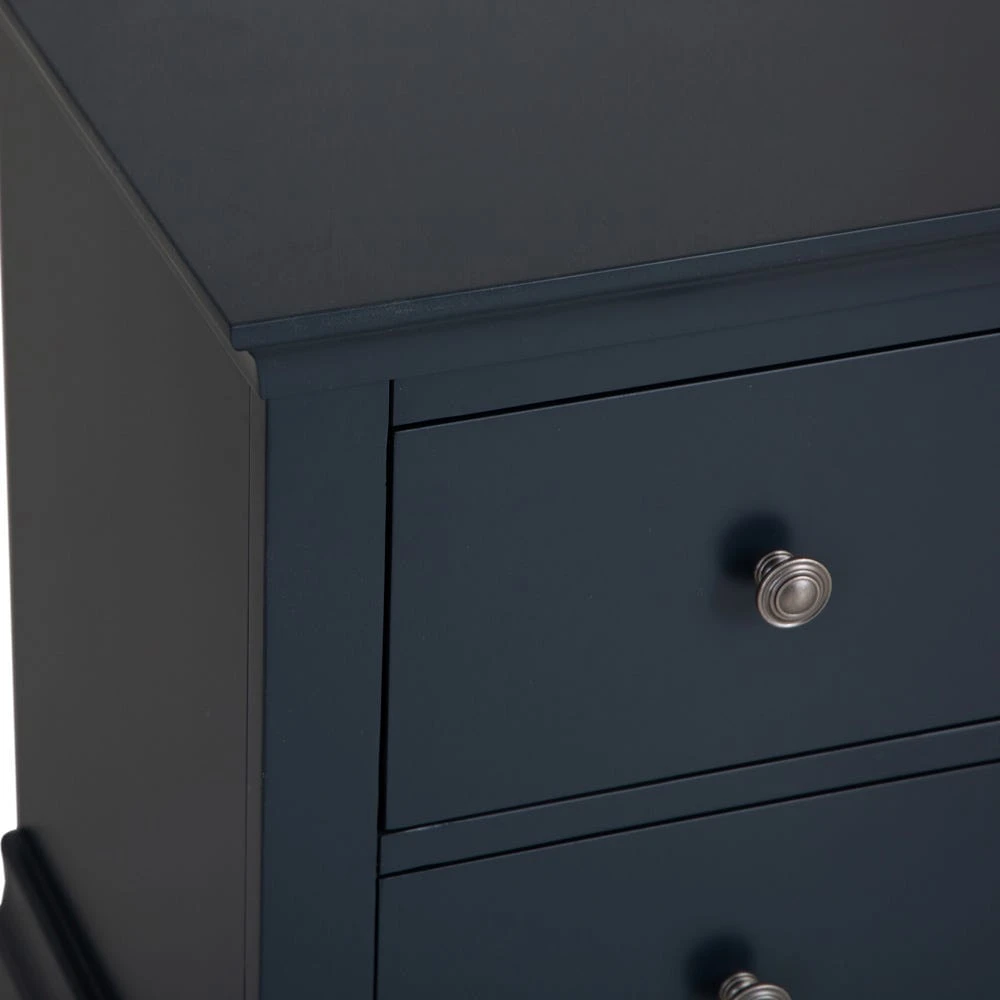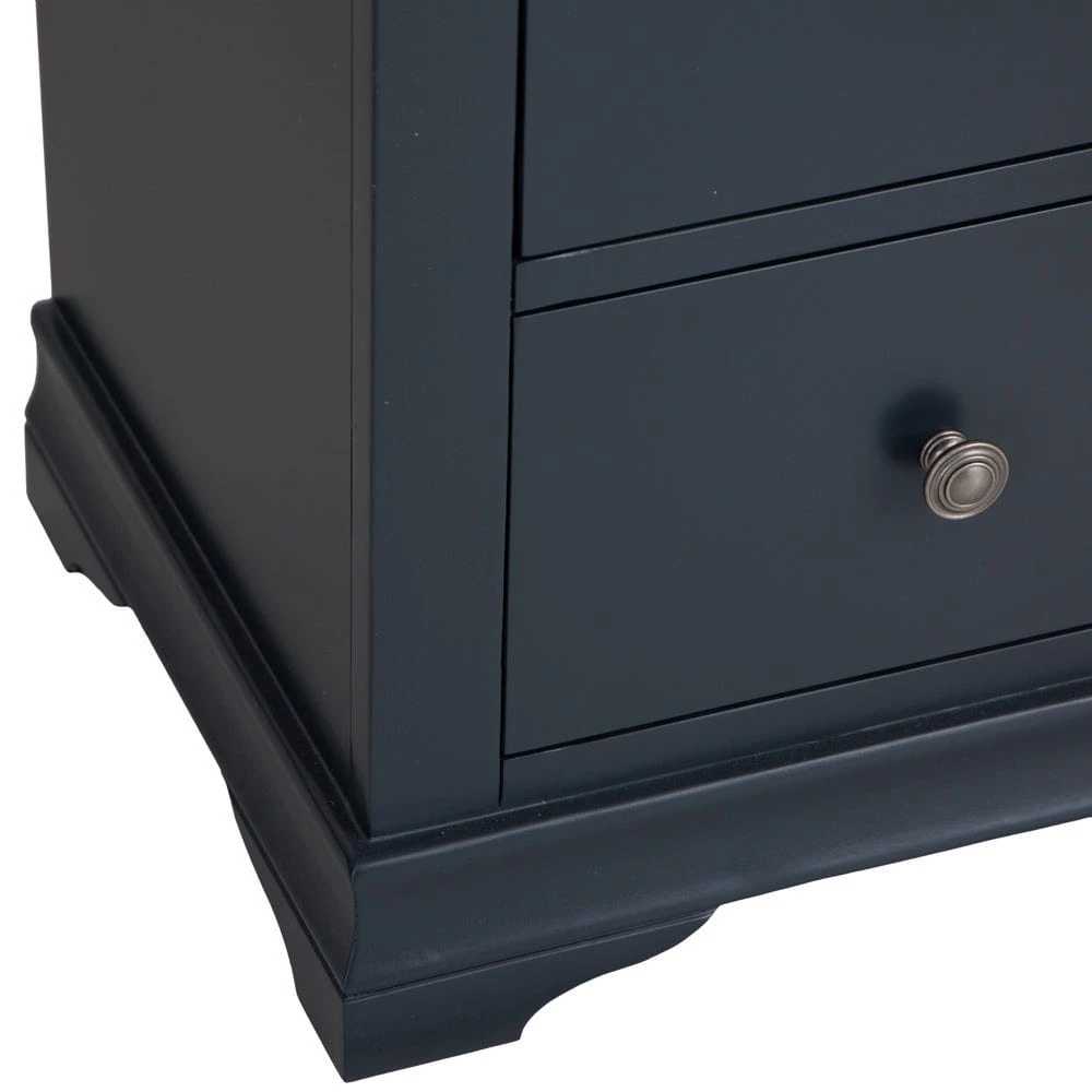 Indulge in a little more space to display your favourite knick-knacks with our Florence midnight grey painted large bedside cabinet.