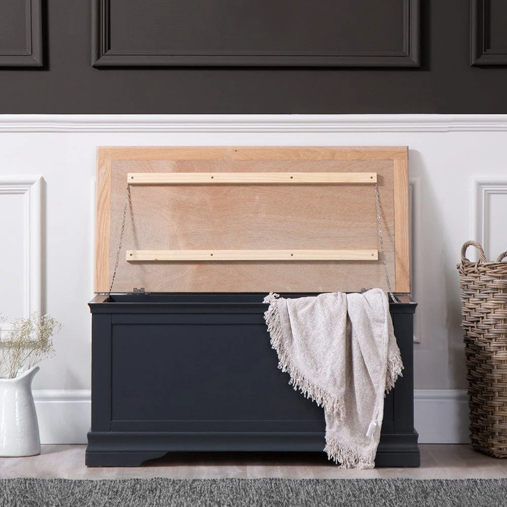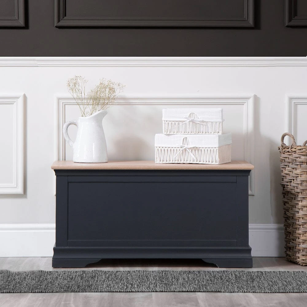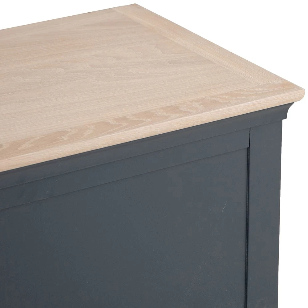 Combining a contemporary colour with a classic design, the Florence Midnight Grey Painted Oak Collection is a fantastically versatile bedroom collection that appeals to those with a desire to adhere to the latest interior design trends. Clean straight lines, subtle detailing and stylish bracket feet – typical of Georgian and Edwardian period furniture – are complimented by rounded pewter-style handles. These handles are minimalistic by design in keeping with the overall smooth and deliberately unfussy look and feel to each furniture item. Thanks to its timeless and versatile design, the Florence Midnight Grey Painted Collection from Chiltern Oak lends itself to numerous interior styles, allowing you to create a calm and relaxing sleeping space regardless of the environment. This range is also available without the oak top, called Florence Midnight Grey.