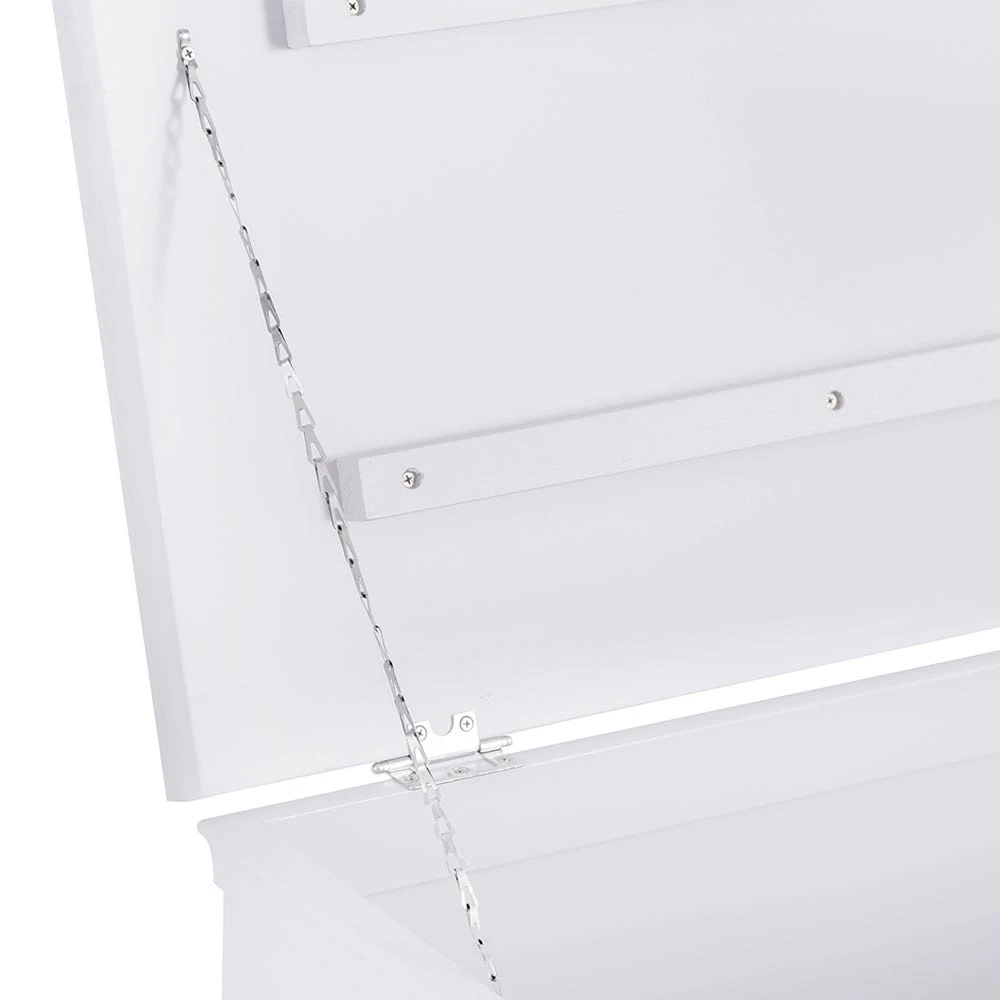 It opens on delicate chain hinges to reveal a large space to keep woolly quilts, scarves or pashminas tucked away until winter.