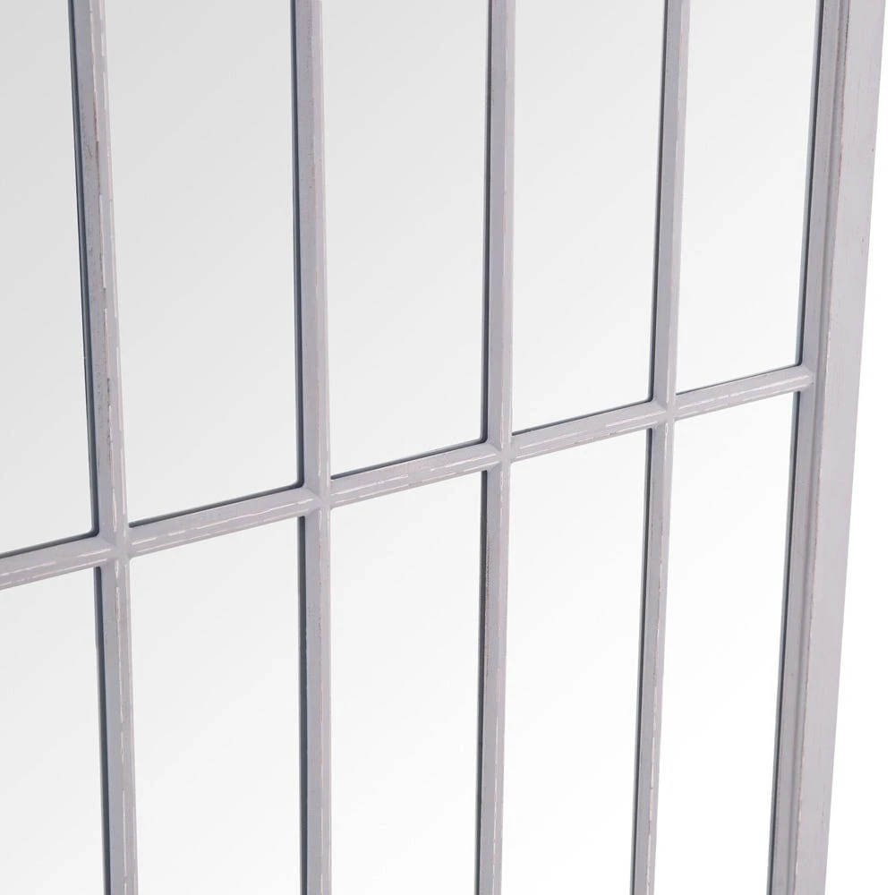 This mirror commands attention the minute you enter the room. Its frame is constructed from solid wood and painted in a distressed grey finish to give the piece a contemporary edge. Its arch shape and window design blend church-inspired style with Art Deco elements.