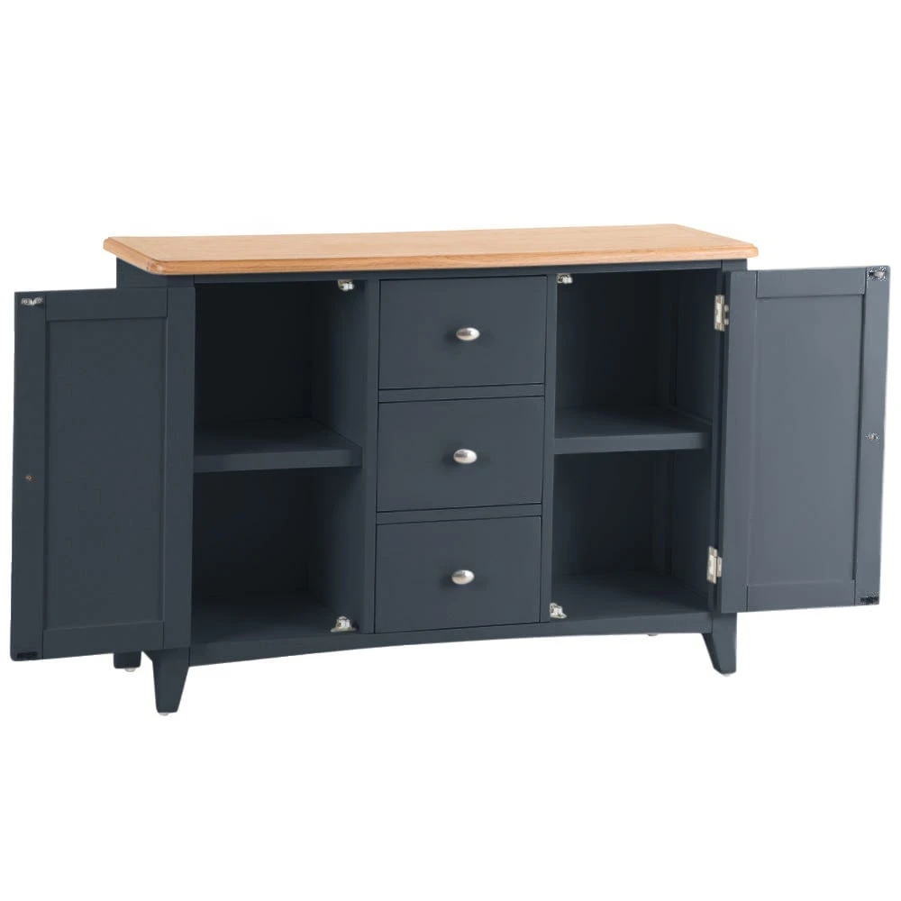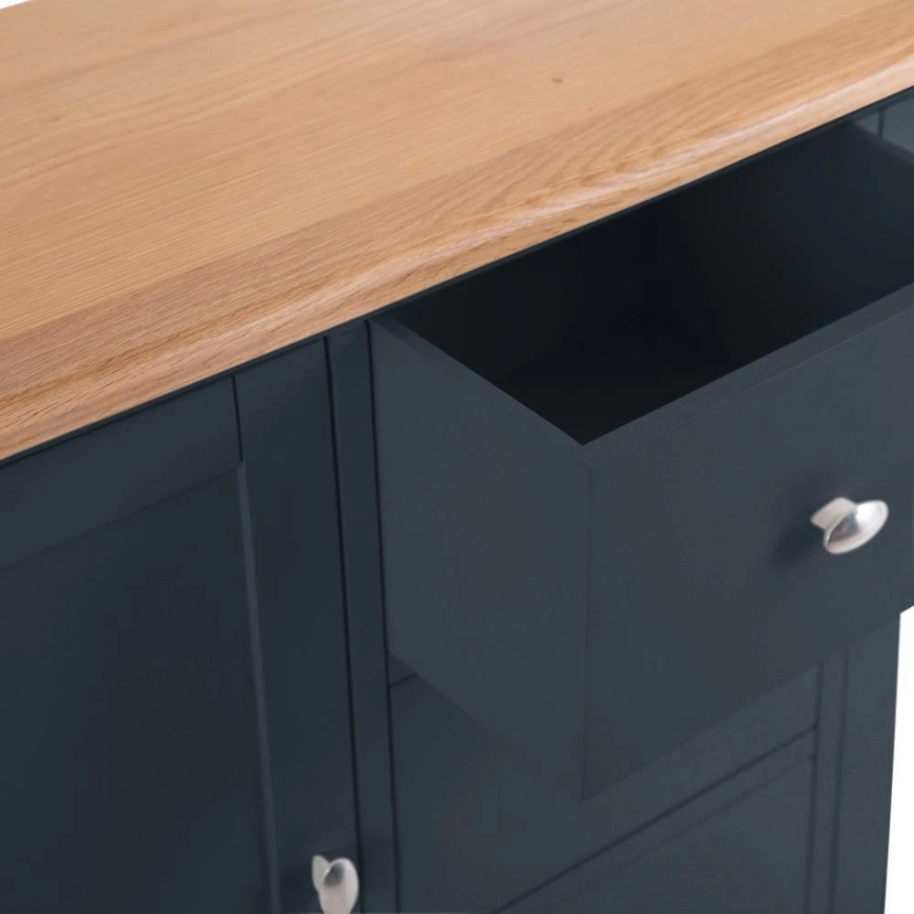 When you come in from a long day, drop everything onto our Gloucester midnight grey painted 2 door 3 drawer large sideboard before heading to make a well-deserved cuppa.