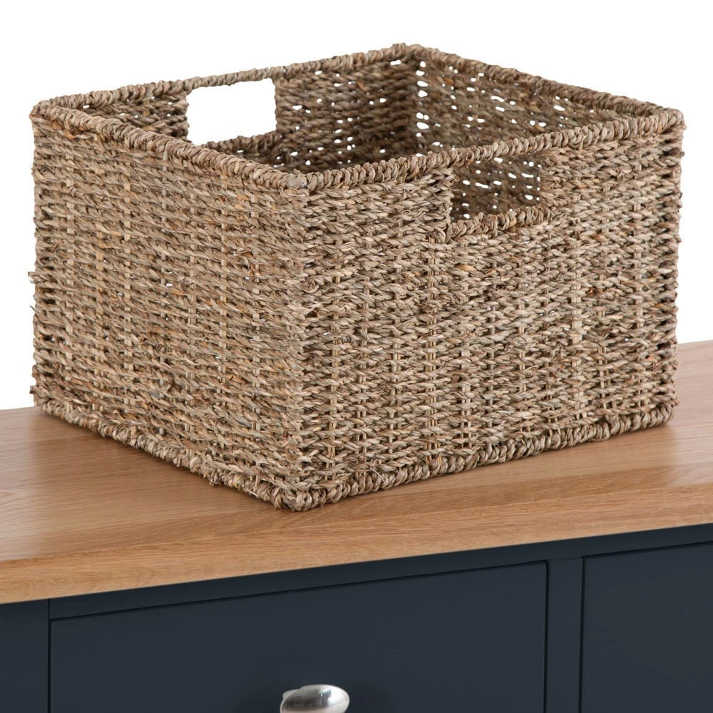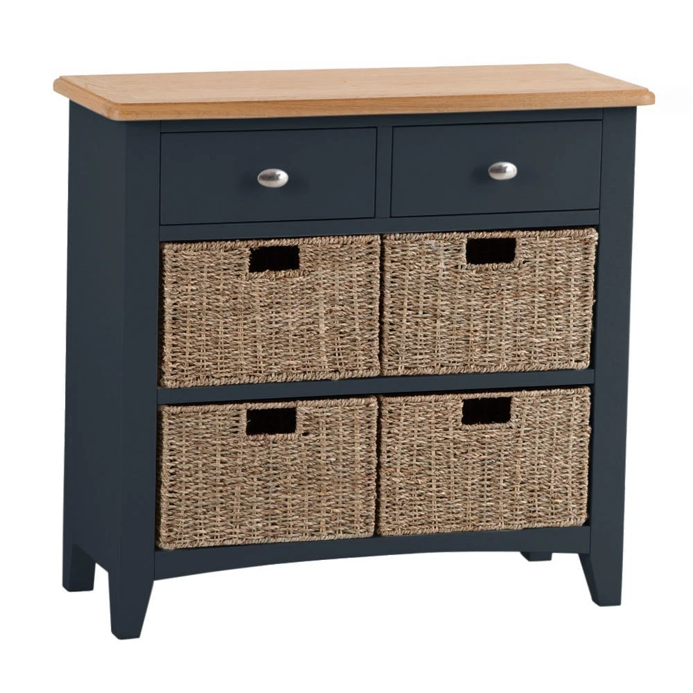 When the kids come home from after-school activities, you’ll have a handy spot to dump the muddy football boots and tennis balls with our Gloucester midnight grey painted 2 drawer 4 wicker basket cabinet.