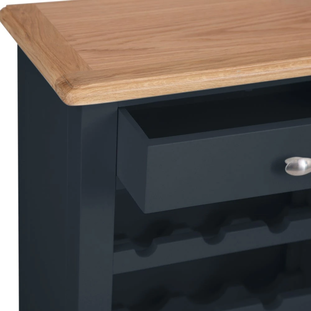 Impress your guests when you keep your riojas, merlots and post-dinner ports on display using our Gloucester midnight grey painted wine cabinet.