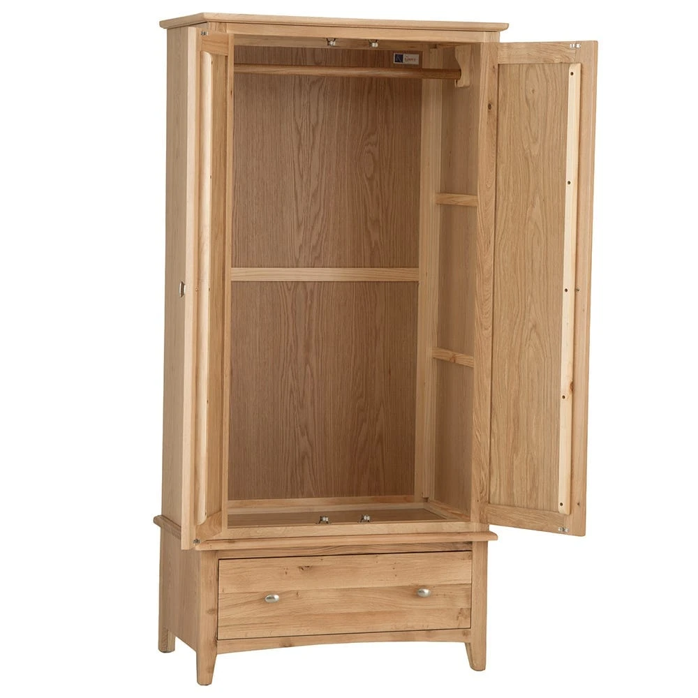 Make space for every season’s outfits when you hang them in our Gloucester oak 2 door wardrobe with a drawer.