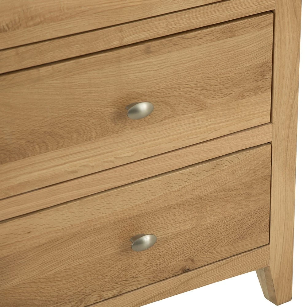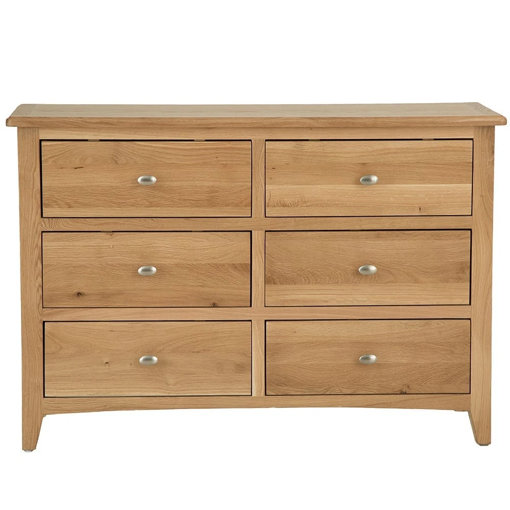 When night falls, light up your bedroom with a trio of candles – there’s plenty of space on top of our Gloucester oak chest of 6 drawers.