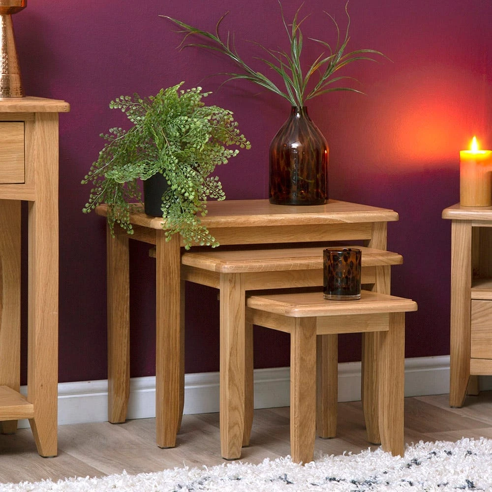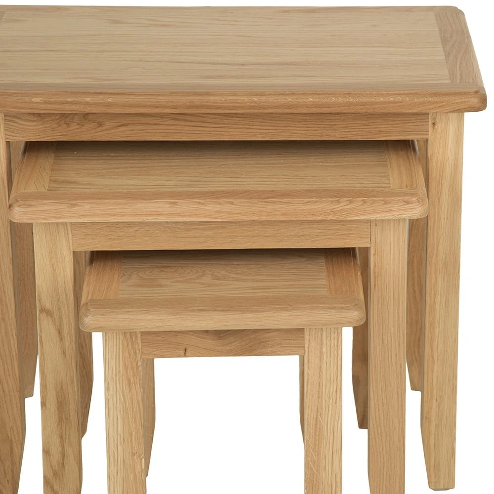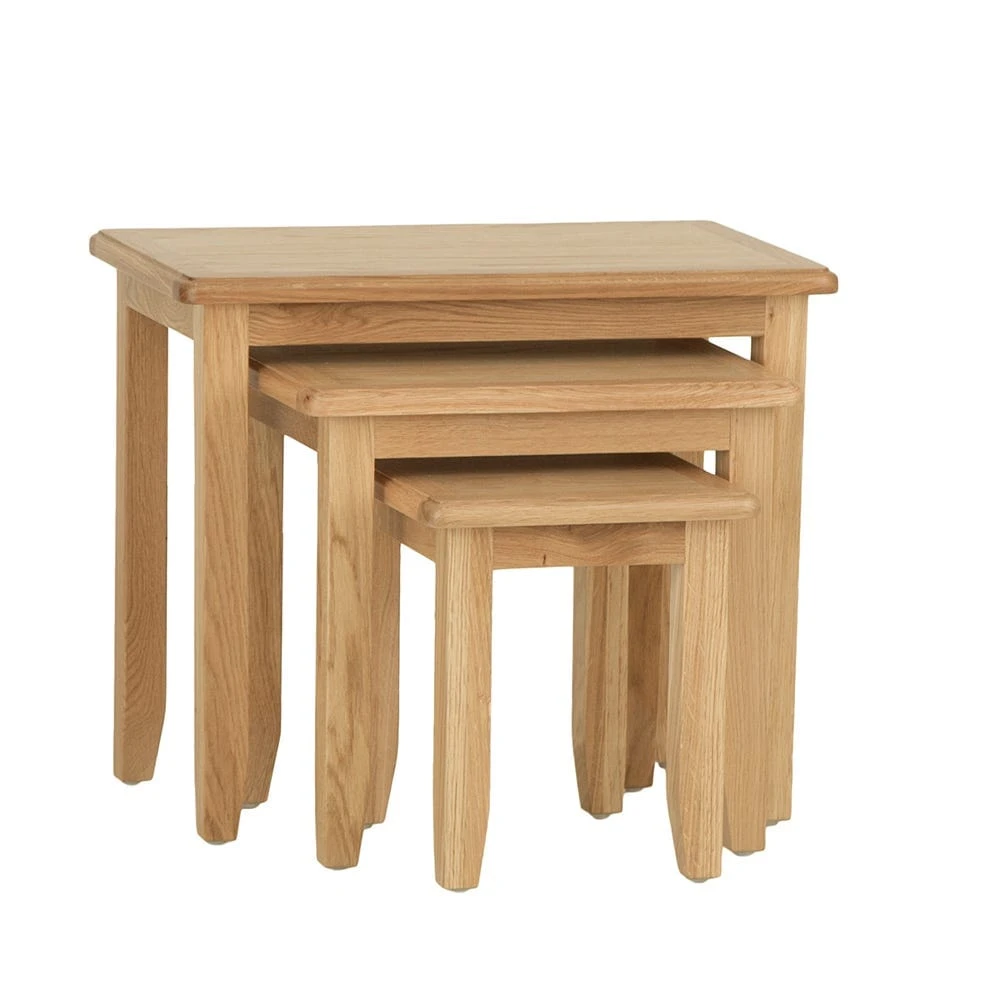 As the evening draws on and your dinner party turns into an after-party, pull out your Gloucester oak nest of 3 tables to spread around the room.