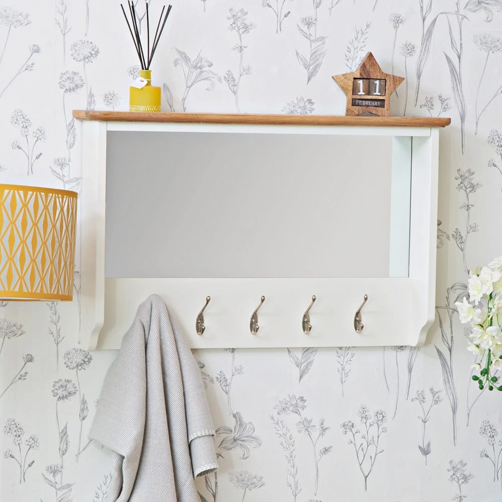 Make mad morning dashes a thing of the past with this Gloucester white painted mirrored coat rack. It has five hooks for coats, bags and brollies for all the family, and the generous mirror lets you check your appearance before you head out of the door.