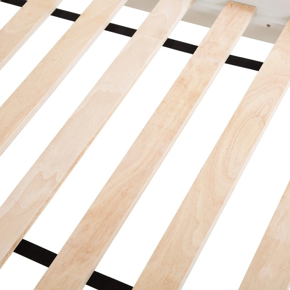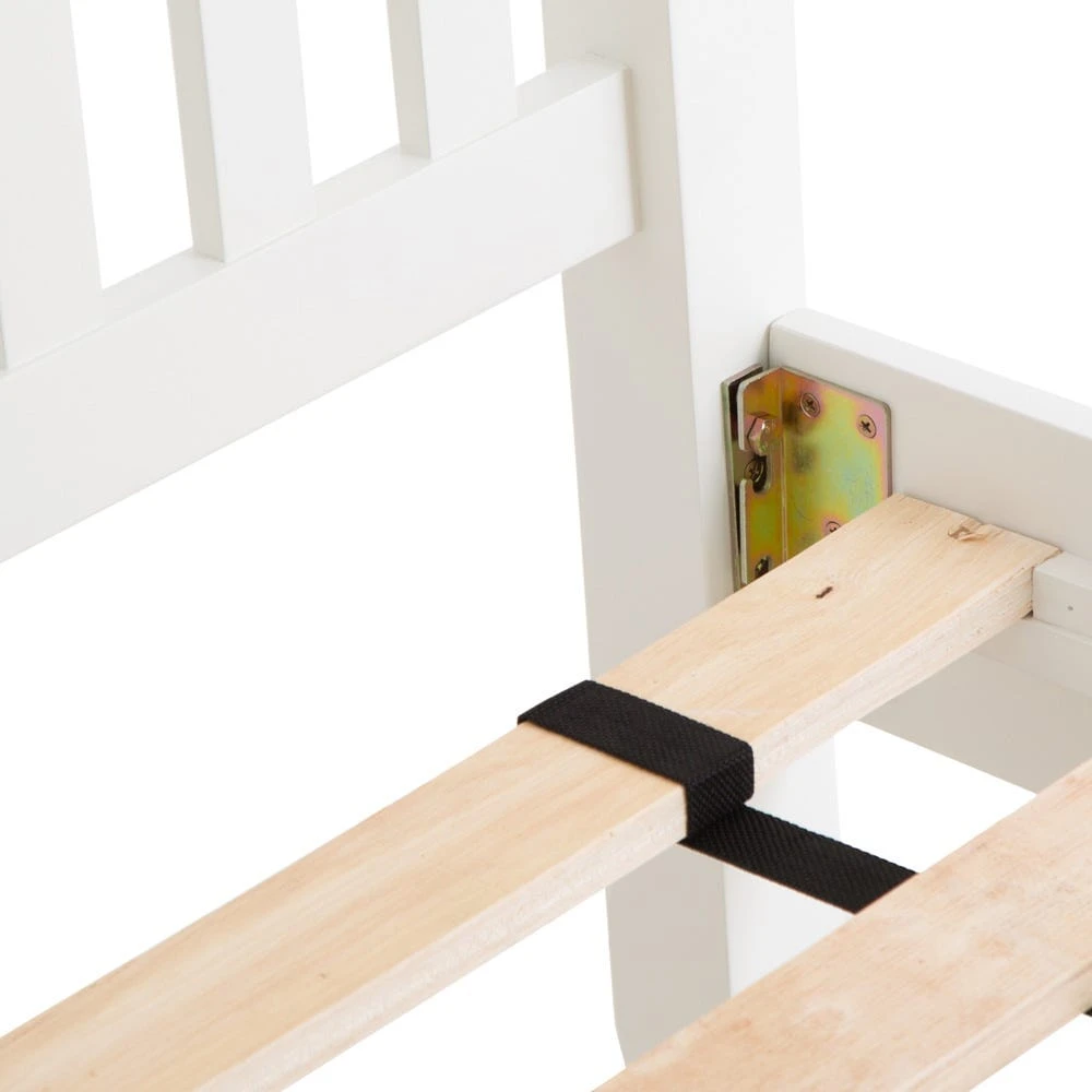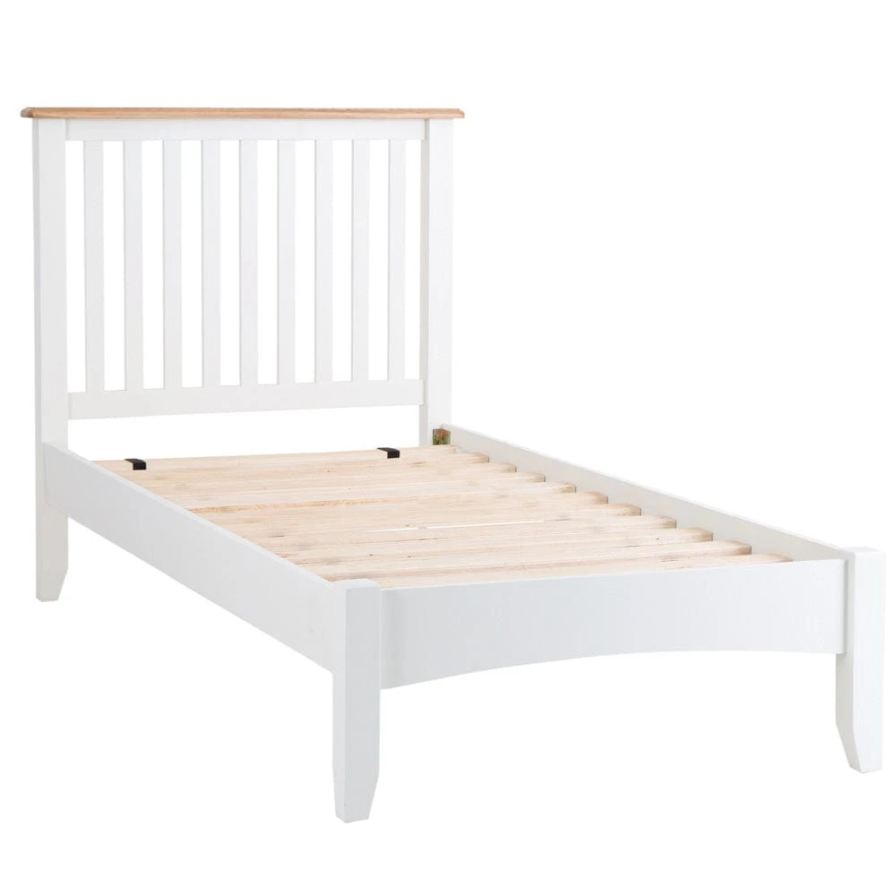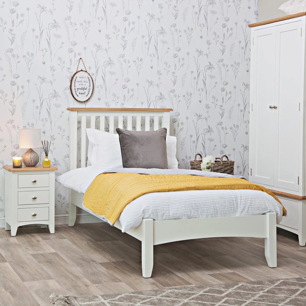 With classic good looks and a versatile hue, our Gloucester white painted single bed frame feels right at home wherever you place it. At just over a metre wide, this timeless piece accommodates a standard single mattress, making it perfect for a children’s bedroom or compact spare room. The tall slatted headboard is ideal for snuggling up with a bedtime story, and our signature oak top adds a rustic touch.