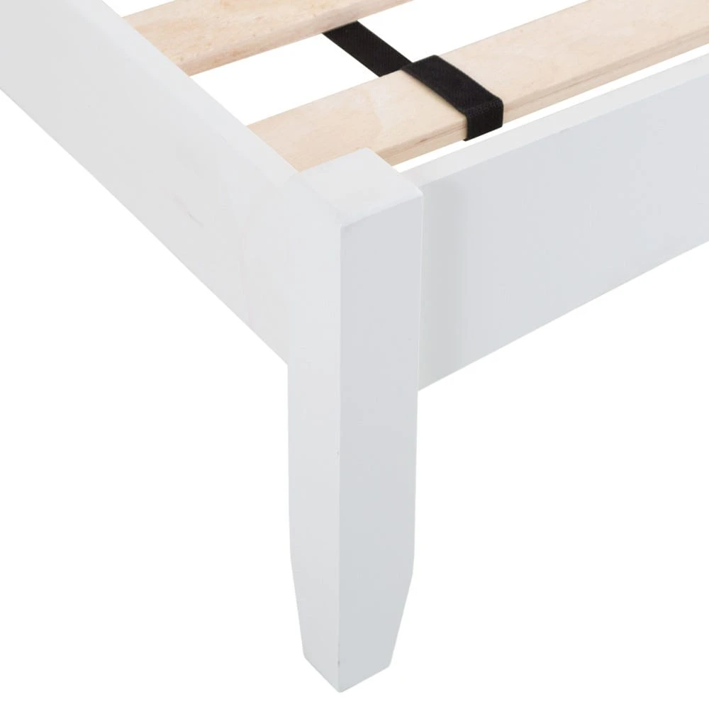 The off-white finish has a fresh feel to brighten up any bedroom, and the tapered legs have a delicate feel. Choose subtle floral patterns or playful patterns to make up this elegant bed.Â
