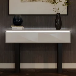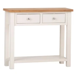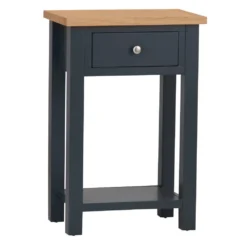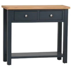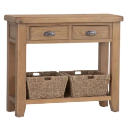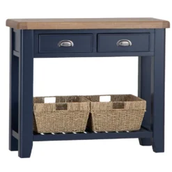 Wessex Smoked Oak Blue Painted Console Table With Wicker Baskets