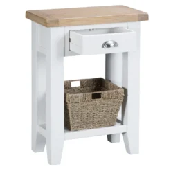 Suffolk White Painted Oak Telephone Table With Wicker Basket