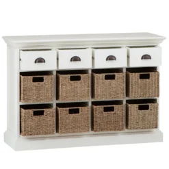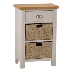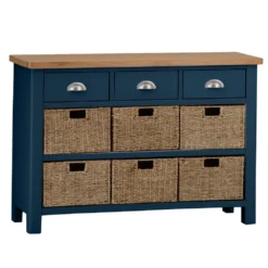 Salisbury Blue Painted Oak 5 Drawer Tallboy With Wicker Baskets