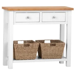 Salisbury White Painted Oak Console Table With Wicker Baskets