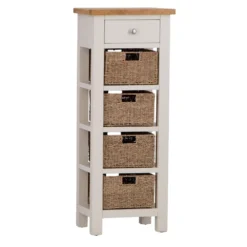 Salisbury Ivory Painted Oak 5 Drawer Tallboy With Wicker Baskets