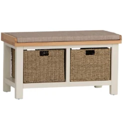 Suffolk Grey Painted Oak Large Hall Bench With Wicker Baskets