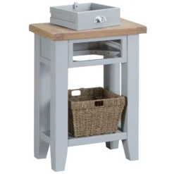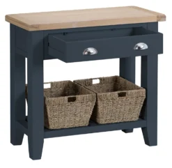 Suffolk Midnight Grey Painted Oak Console Table With Wicker Baskets
