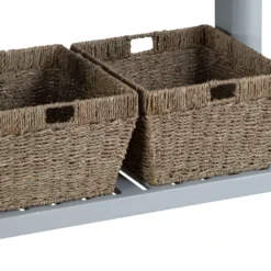 Suffolk Grey Painted Oak Large Console Table With Wicker Baskets