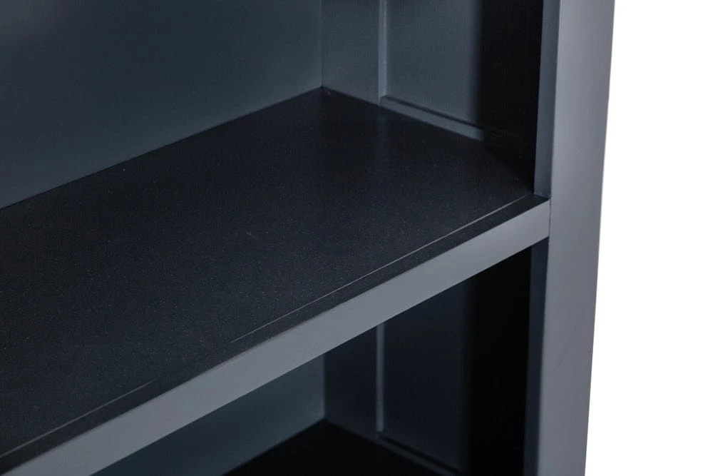 This Hampshire blue painted oak large bookcase is slender enough to fit easily into small spaces, adding interest and colour to bare walls. There are five generous fixed shelves, each hemmed in by lipped vertical edges to keep all your novels and non-fiction securely in place. The suitably sophisticated dark blue frame is offset by the rustic oak top, which has rounded corners for a soft finish.