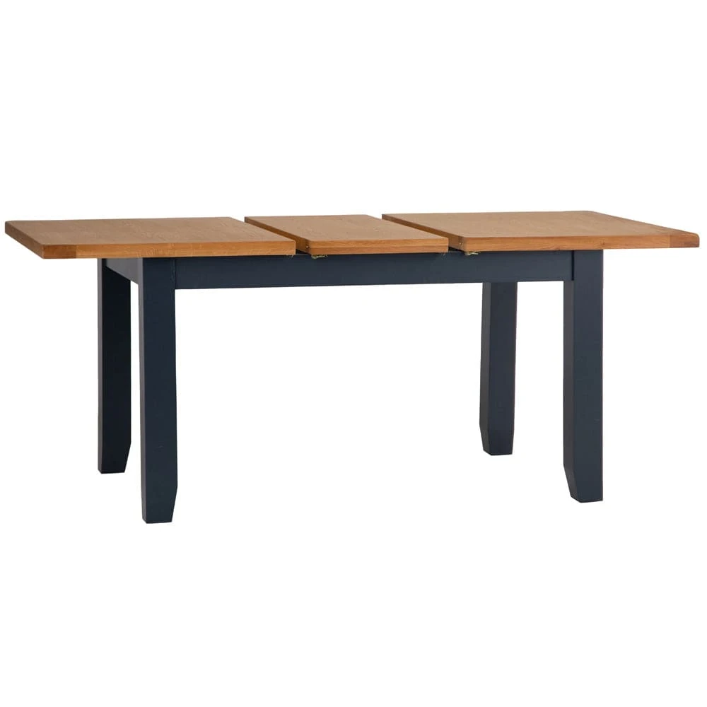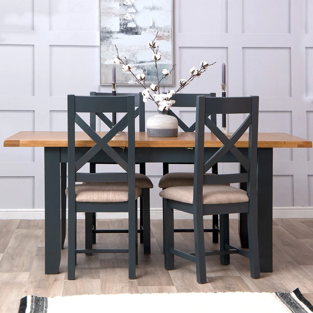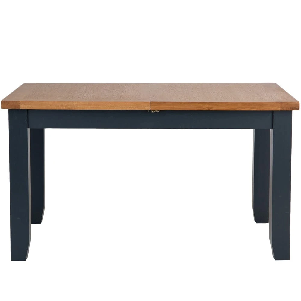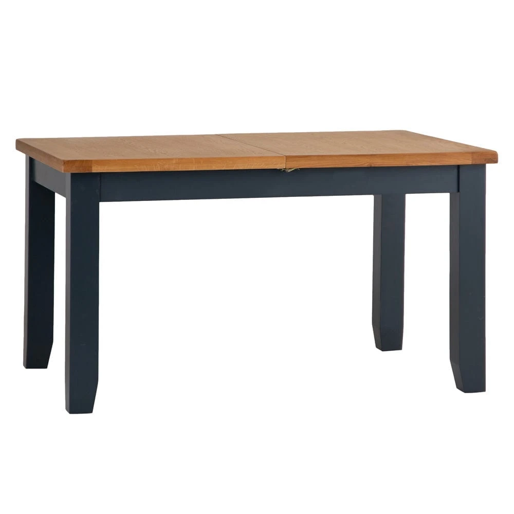 If you love catering for a crowd, this Hampshire blue painted oak medium extending dining table is for you. Its chunky oak tabletop accommodates groaning dishes and piled-high plates, and it extends to a sizeable 180cm when you’re hosting guests. Return it to its former size to regain some living space. The tapered legs are painted in our ultra-classy navy blue to bring some modern flair to your dining area, and you can choose matching chairs for the complete set.